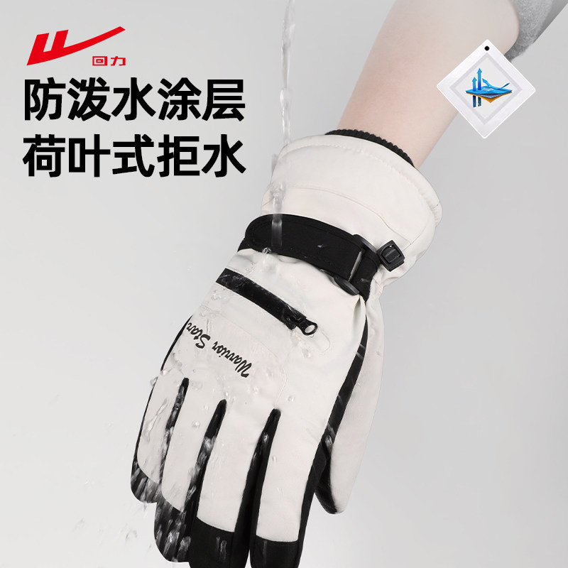 回力手套滑雪男士冬季骑行保暖防滑触屏加绒加厚女士骑车防风防水