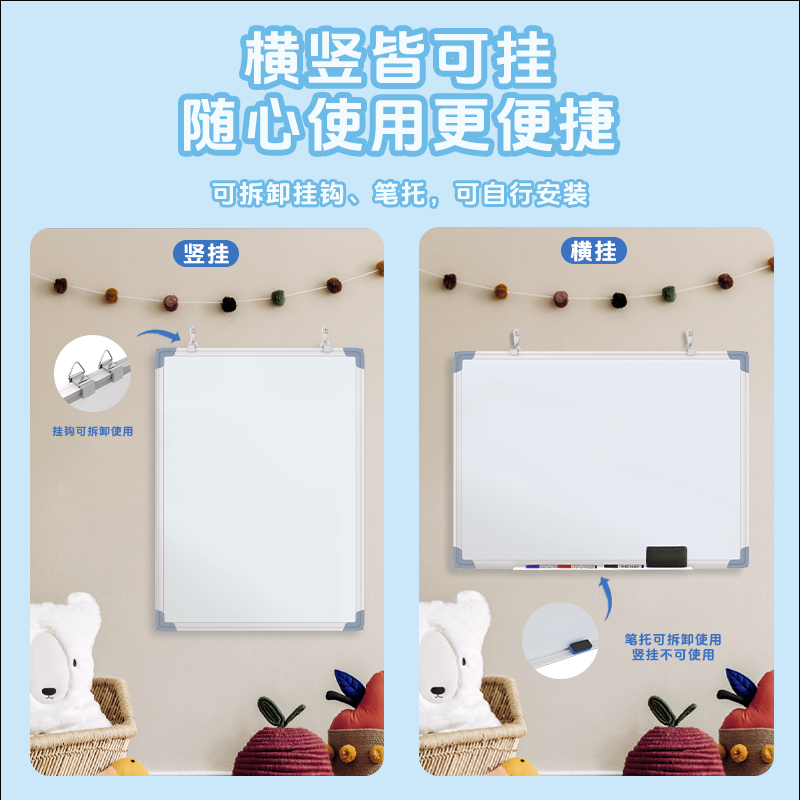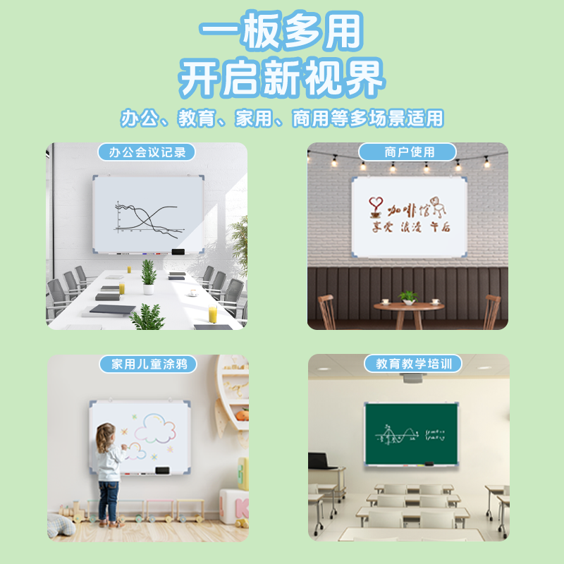 小白板黑板家用白板挂式写字板画板学习办公磁性可擦粉笔儿童会议教学可挂墙双面磁性白板