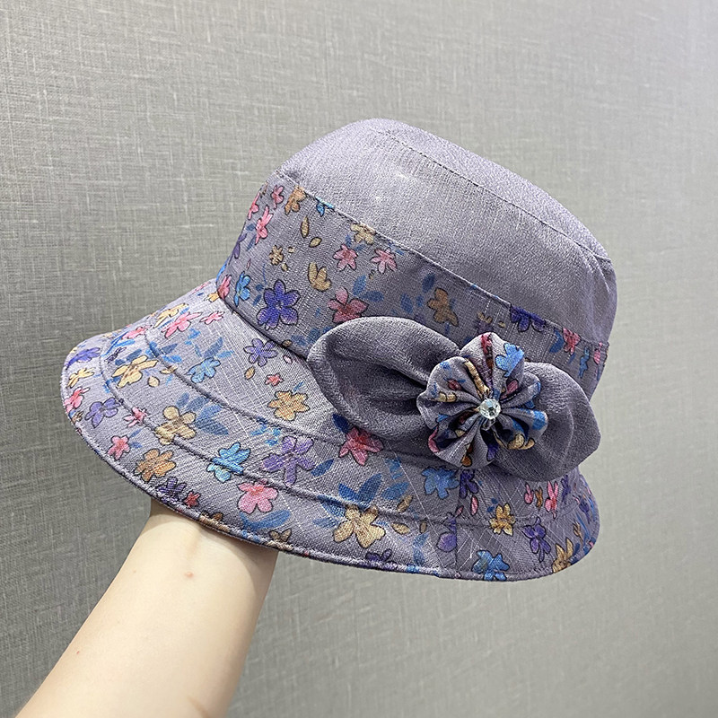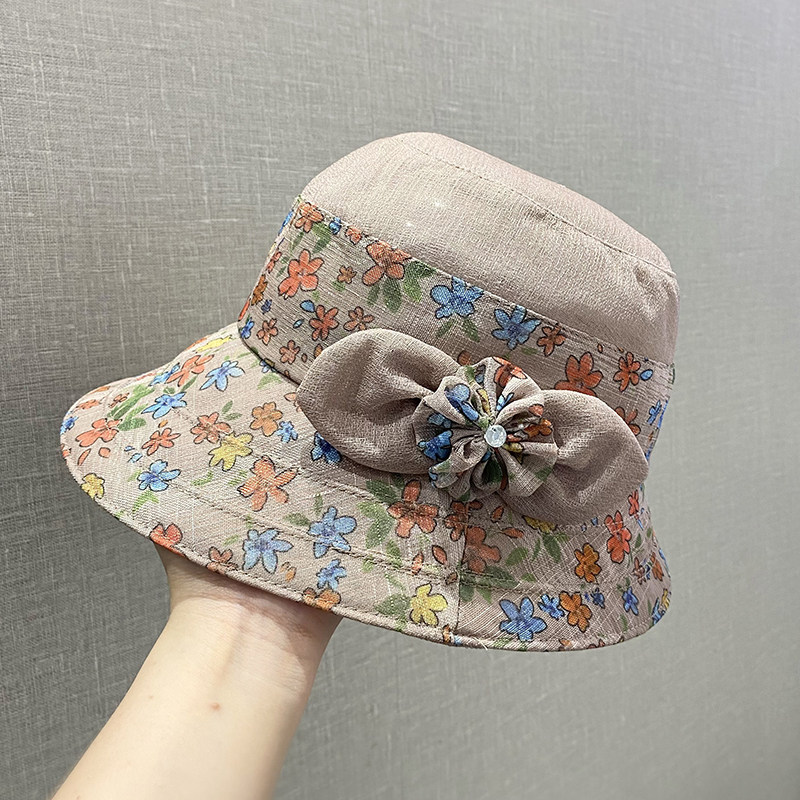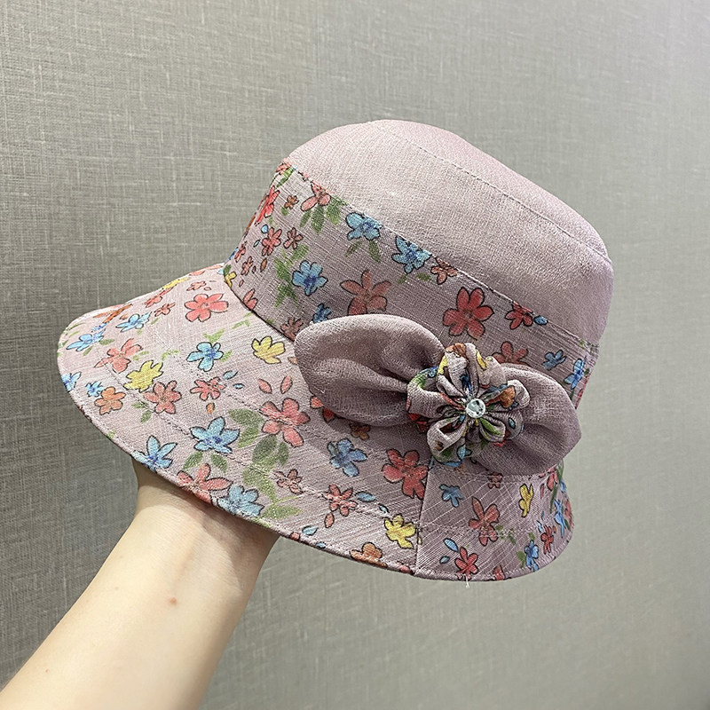 女士优雅花朵渔夫帽薄款透气凉帽夏季出游度假妈妈遮阳显脸小盆帽