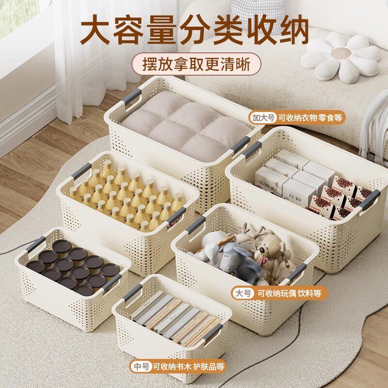 桌面收纳盒零食玩具整理盒家用塑料箱厨房储物篮子杂物收纳筐
