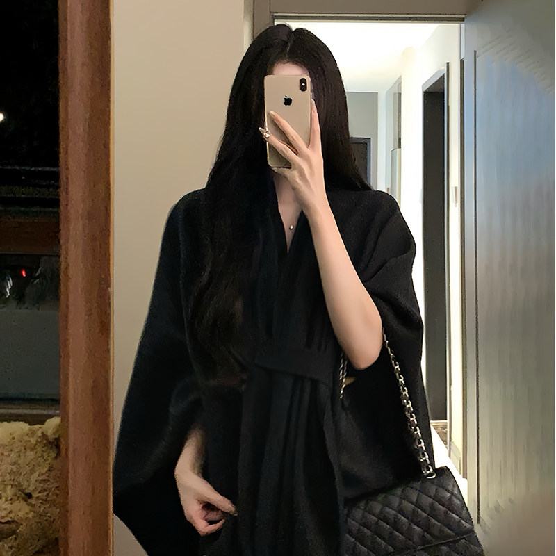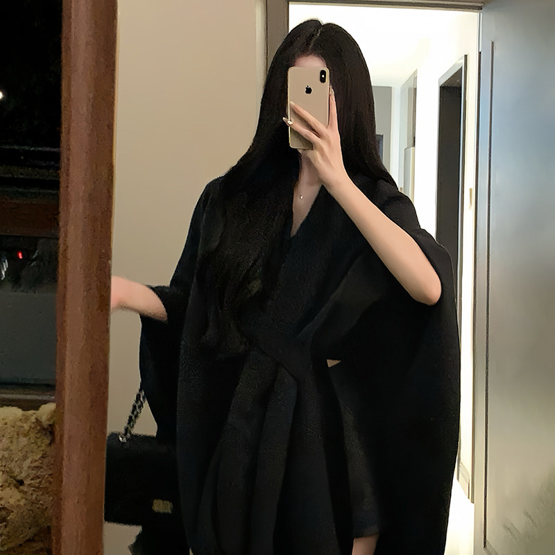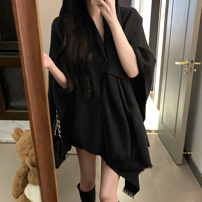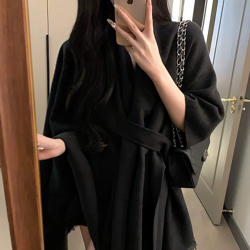 黑灰色披肩外搭女2025新款秋冬斗篷高级感纯色流苏保暖两用披风