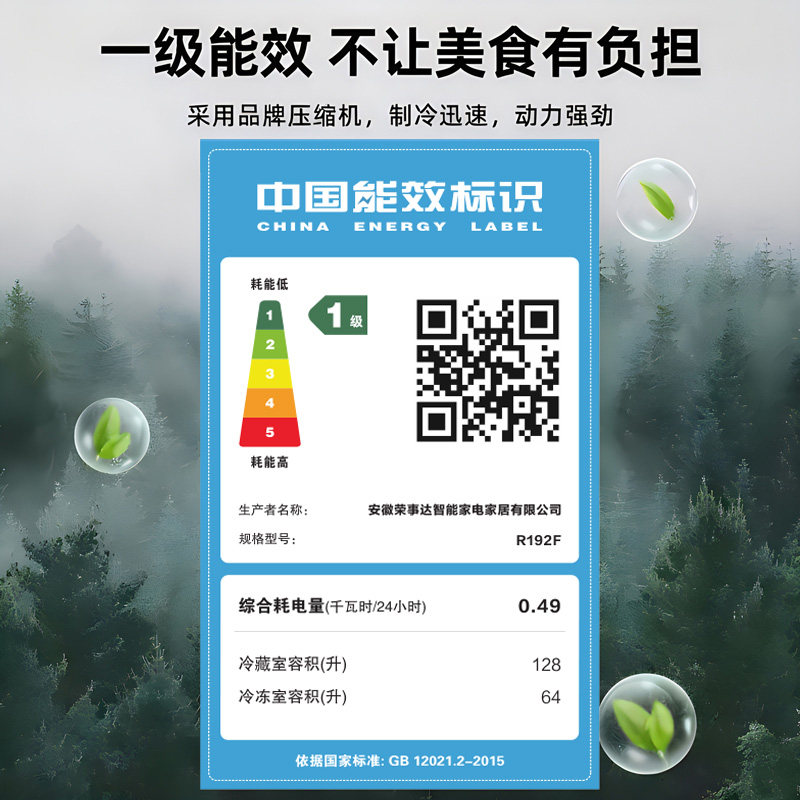 国家补贴荣事达风冷无霜电冰箱一级能效家用小型出租房用双门节能