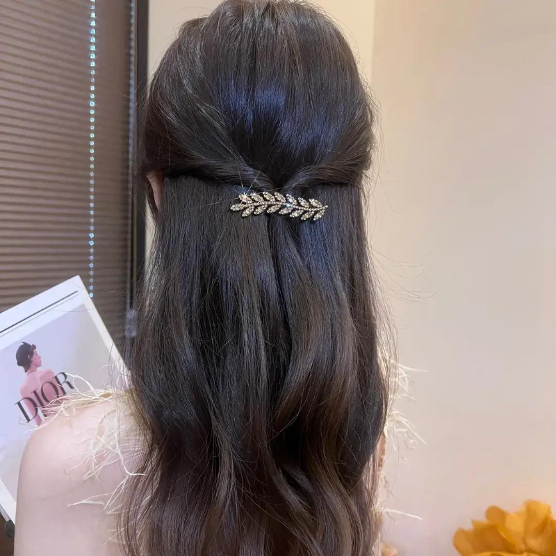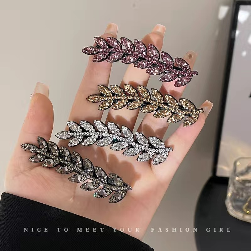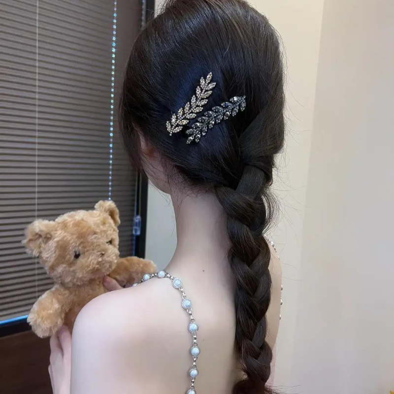 高级感麦穗水钻发夹前额刘海碎发边夹女气质半扎发碎发鸭嘴夹发卡