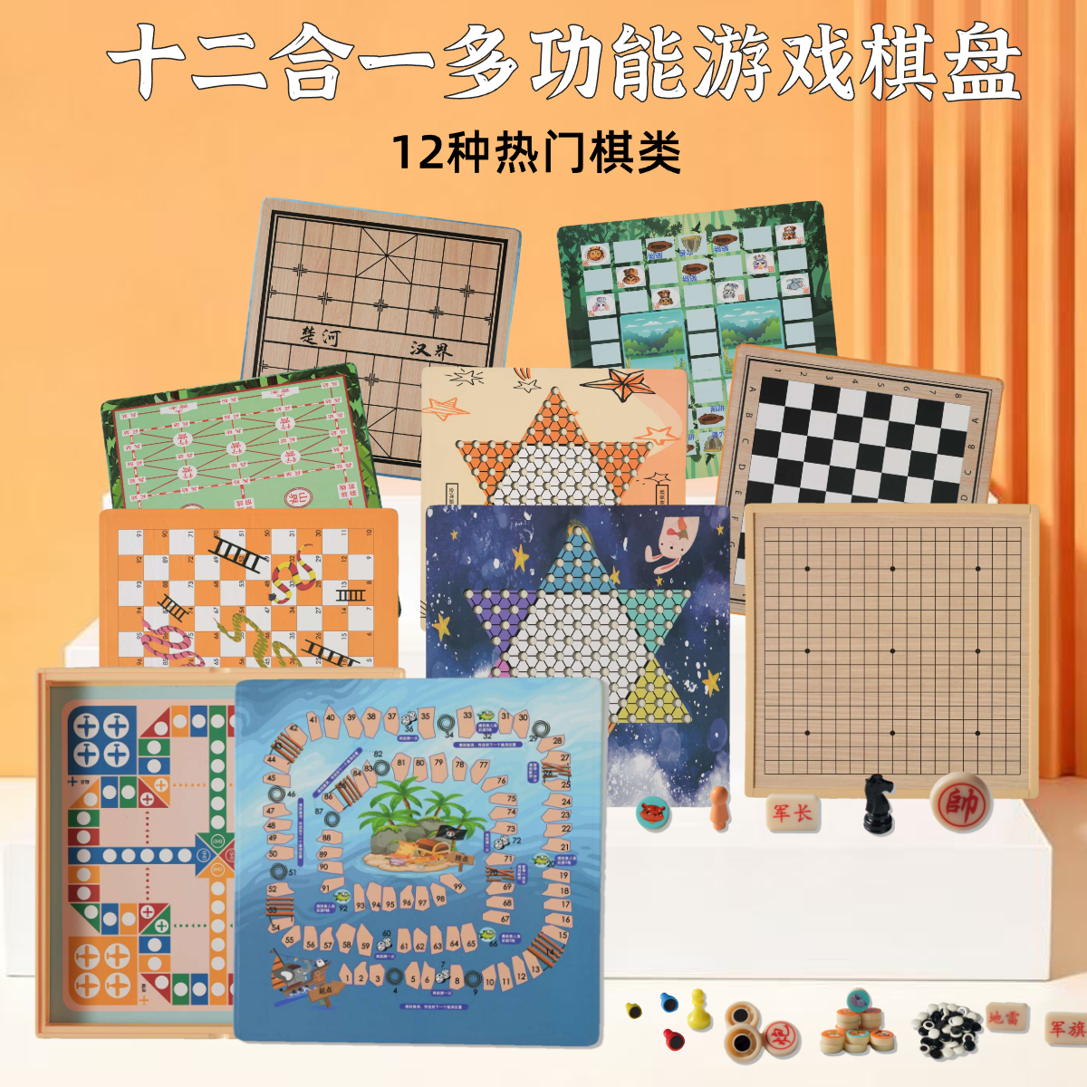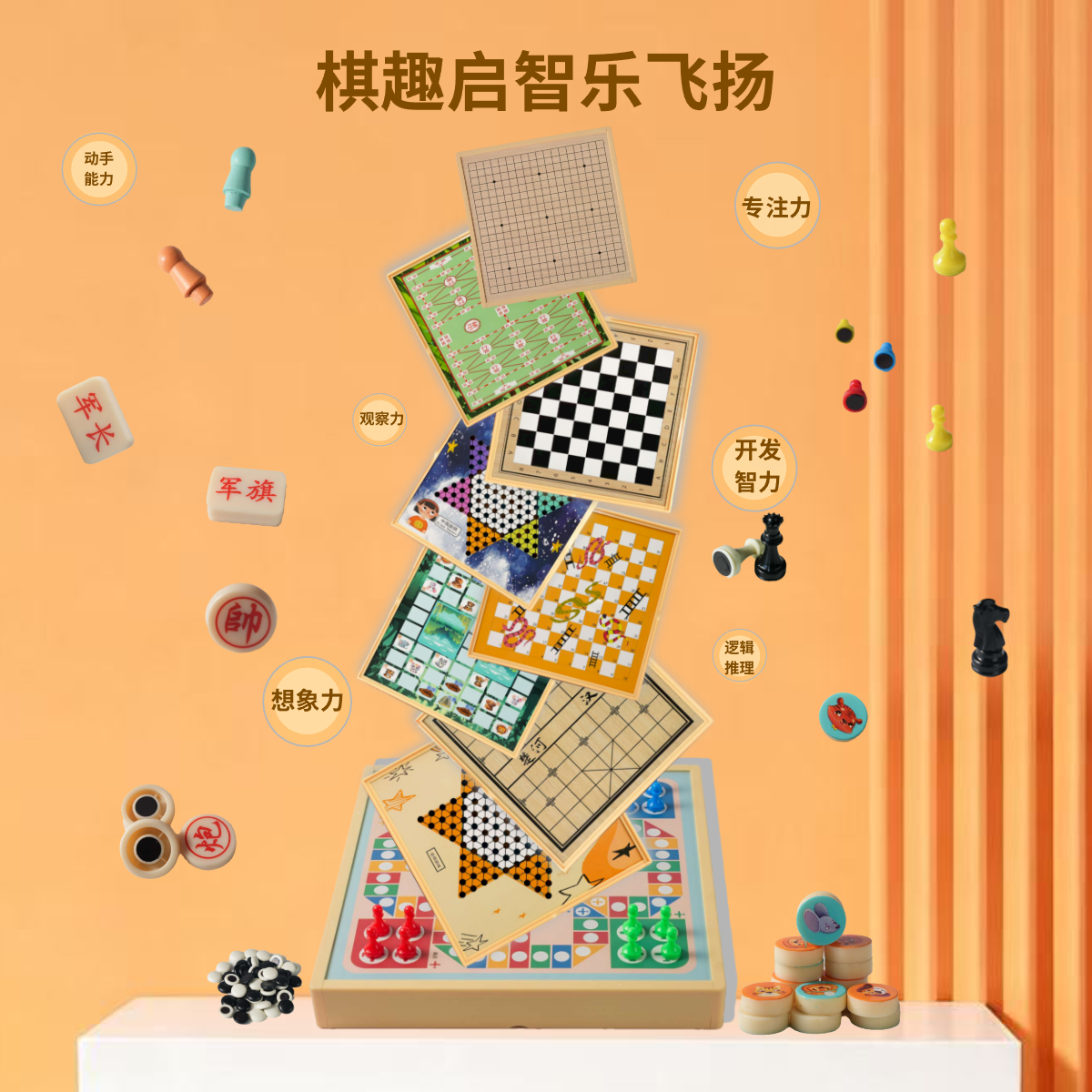 多合一跳棋五子棋飞行棋儿童益智玩具多功能棋盘棋类小学生版套装