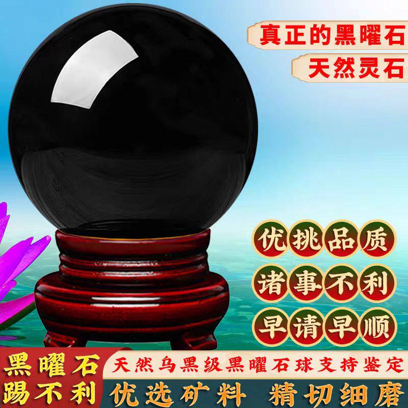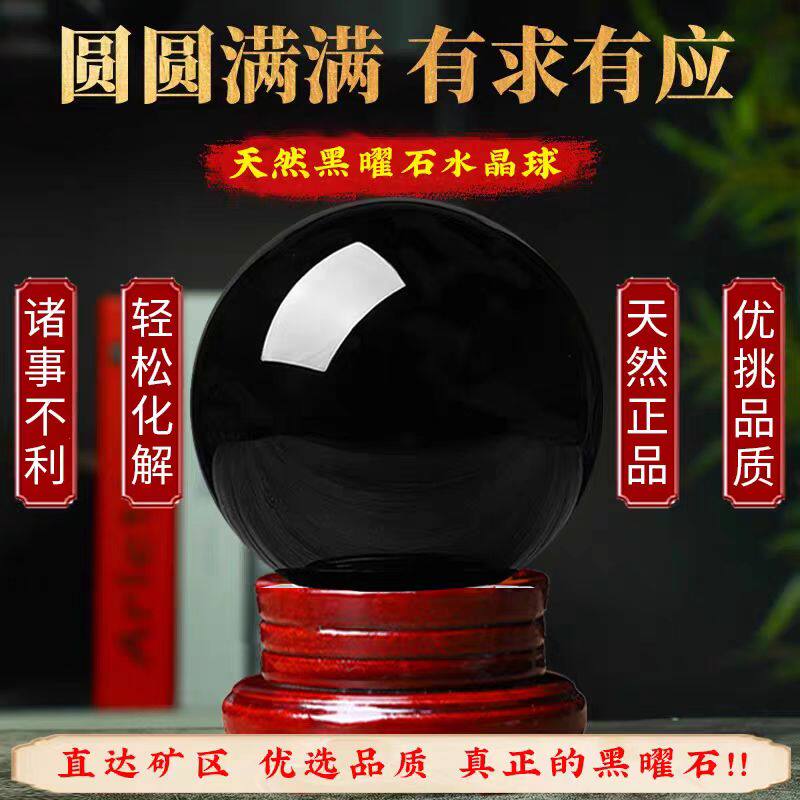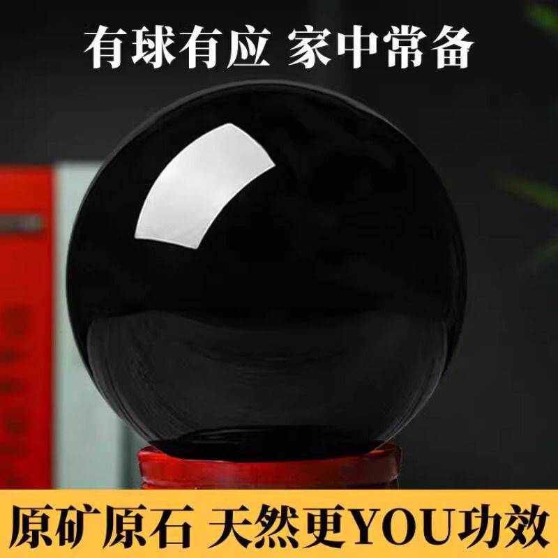 黑曜石球水晶球摆件黑色水晶原石打磨家居客厅办公室公司装饰品