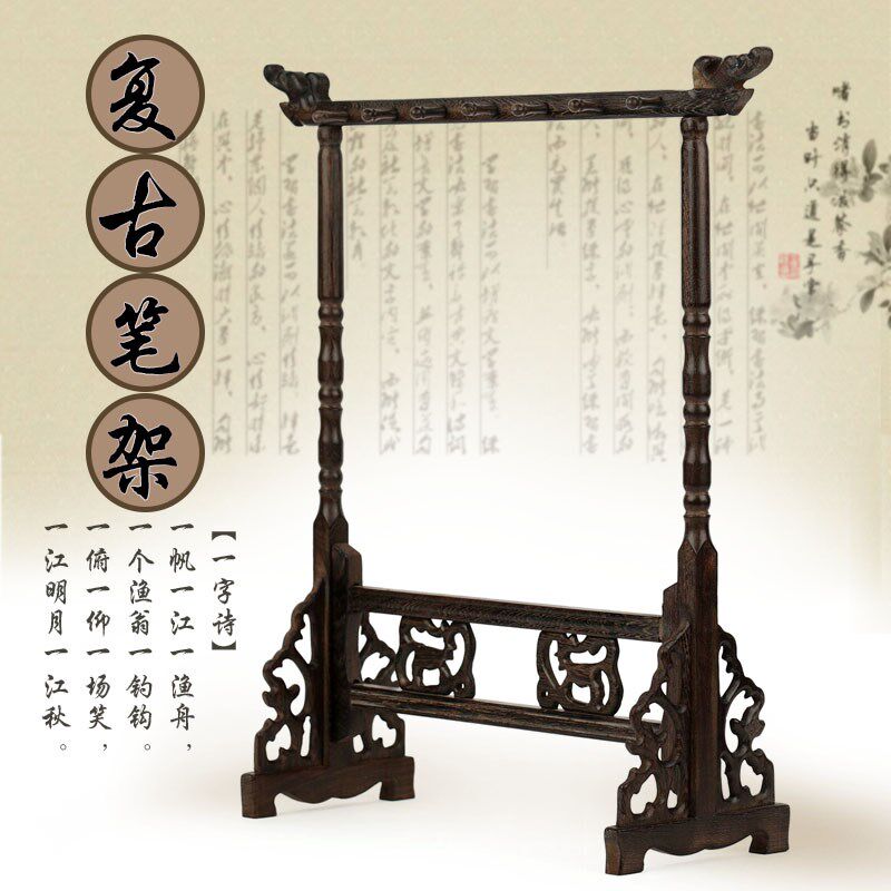 雅轩斋红木笔架毛笔挂鸡翅木雕刻实木龙头笔挂毛笔架文房四宝14针