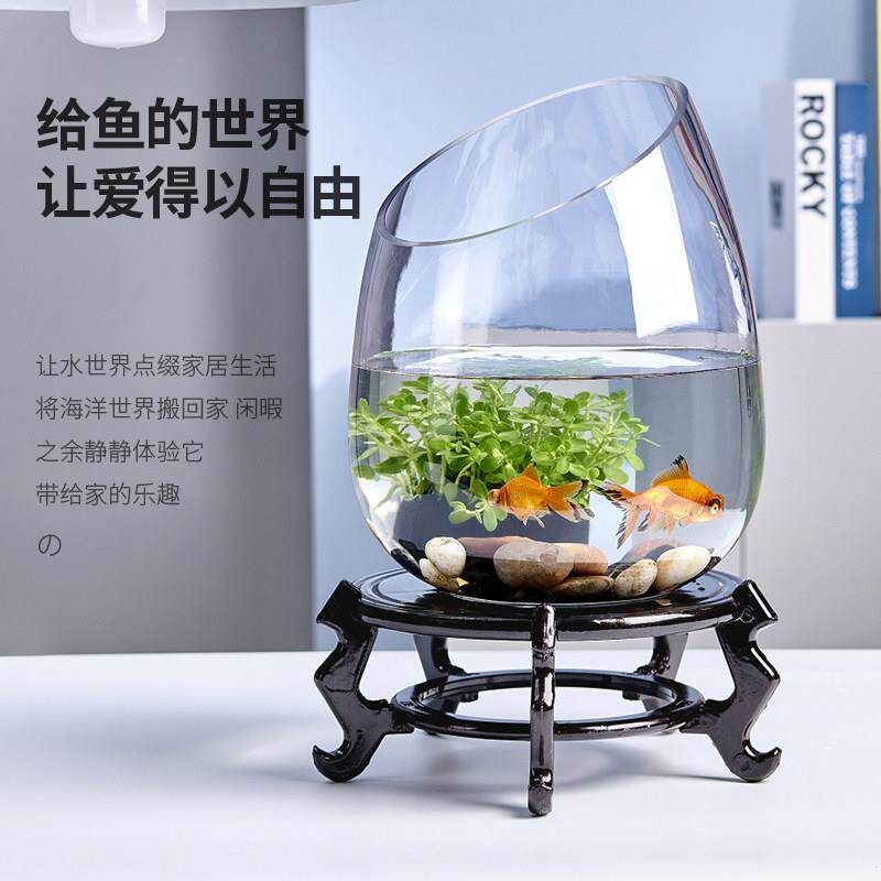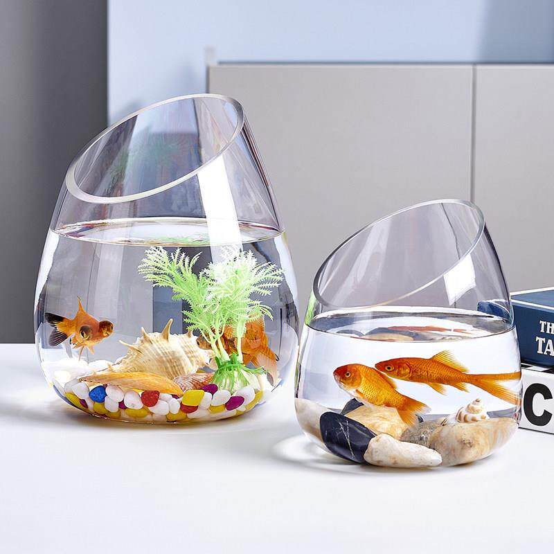 办公室小鱼缸加厚透明玻璃乌龟缸客厅家用桌面圆形斜口小型金鱼缸