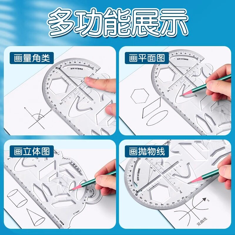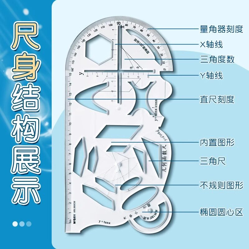 晨光几何函数绘图模板尺中学生用多功能镂空尺子图形工具初高中数学画图模板万能尺直尺学习文具960CW