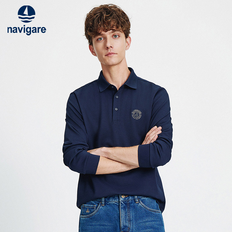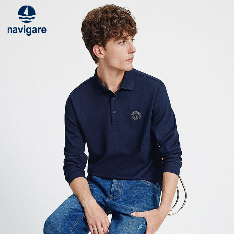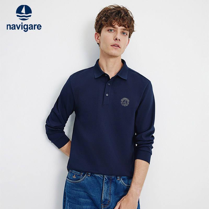 Navigare意大利小帆船休闲时尚翻领长袖T恤男秋季新款纯色POLO衫