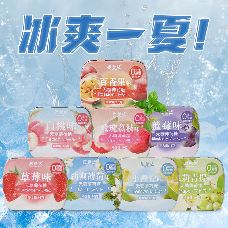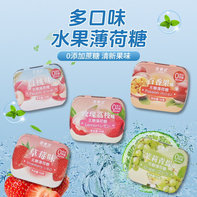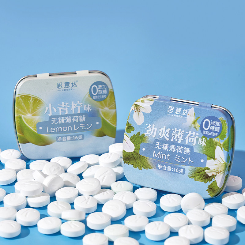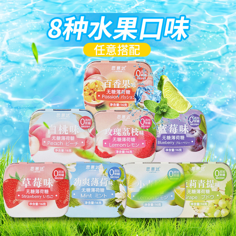 无糖薄荷糖口香糖含片随身携带糖果清新口气接吻糖小零食品铁盒装