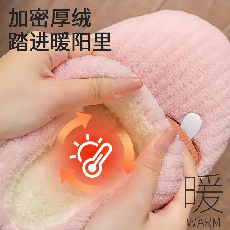 朴西棉拖鞋女士秋冬季厚底简约保暖室内居家用软底防滑情侣棉拖男
