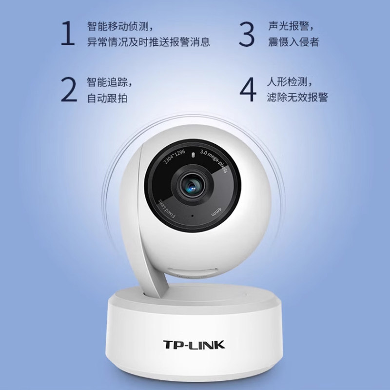 普联tplink无线摄像头家用室内监控器wifi连接带网口日夜全彩手机远程app控制人形追踪云台旋转TL-IPC43AN-4
