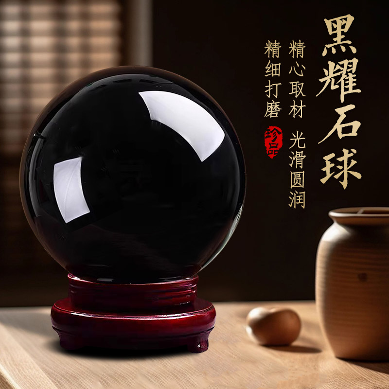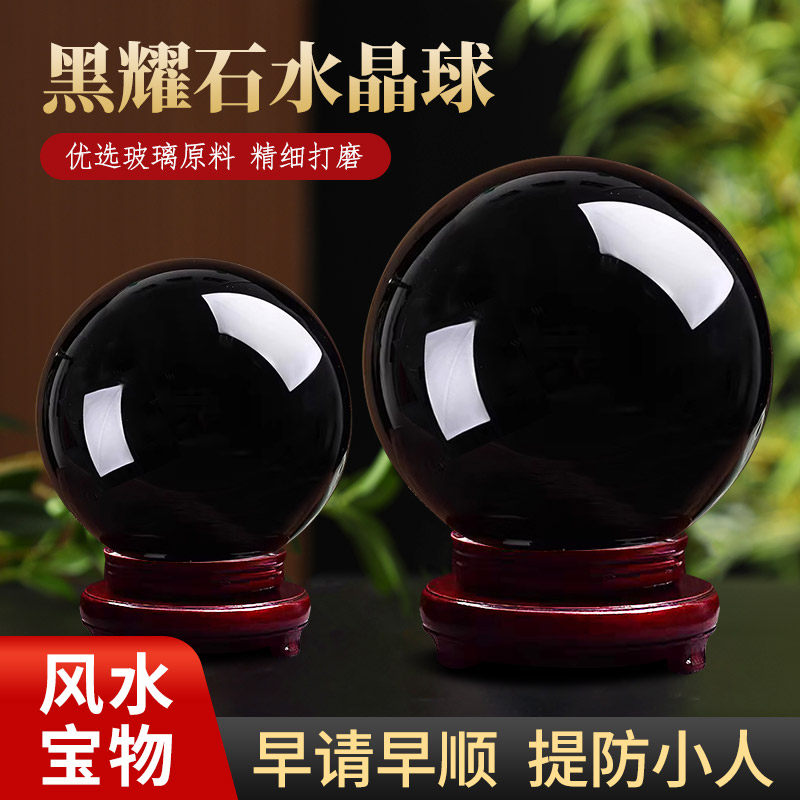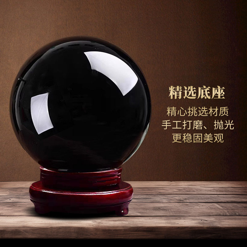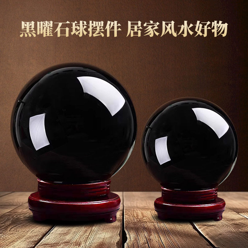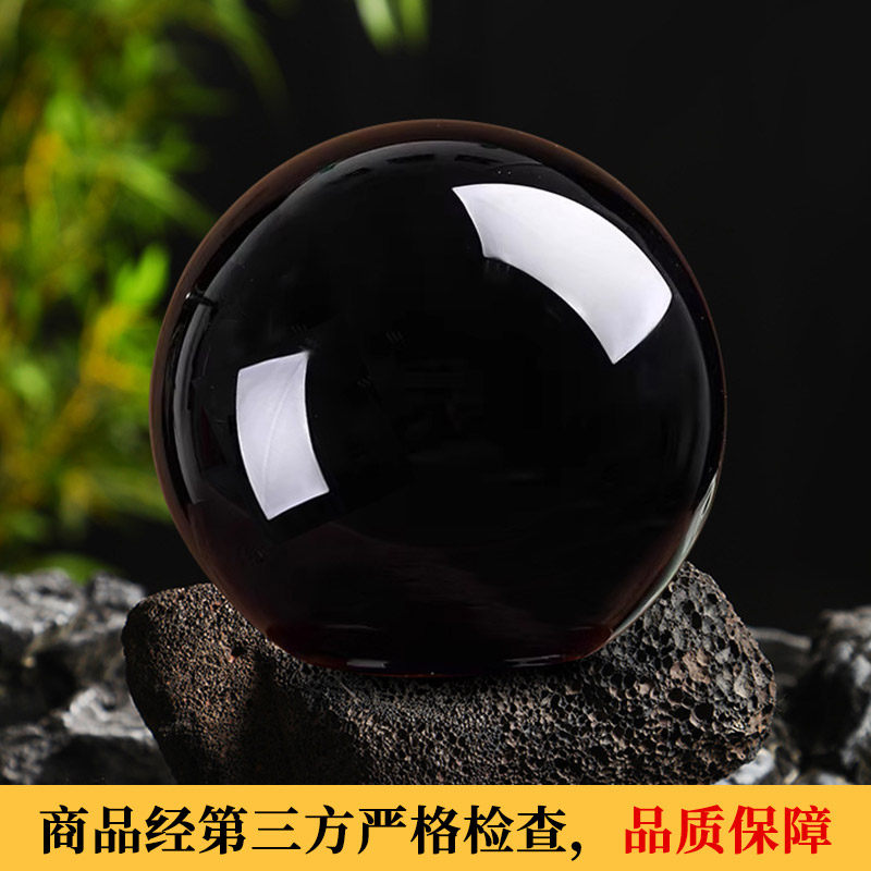 天然黑曜石水晶球桌面摆件黑色打磨客厅办公玄关开业乔迁装饰镇宅