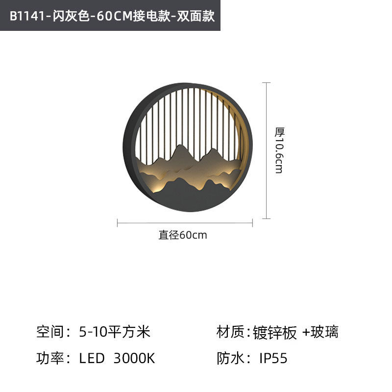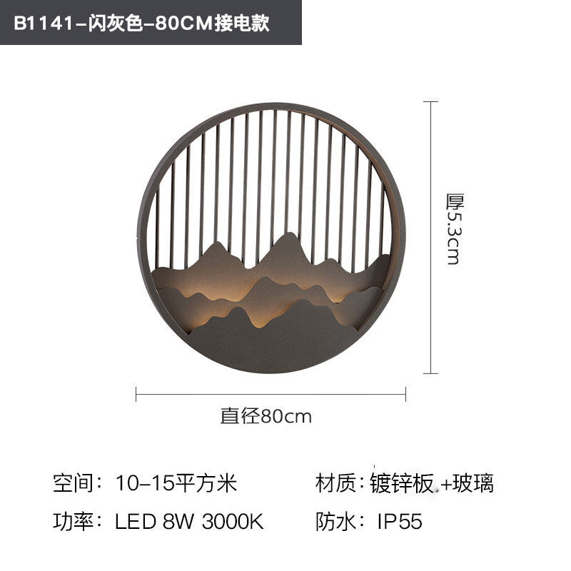 新中式户外山水壁灯防水背景墙灯玄关灯围墙灯庭院壁灯太阳能假山