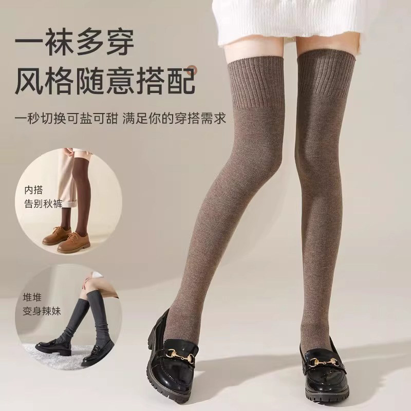 羊毛过膝袜子女款秋冬季加绒加厚长筒袜压力瘦腿保暖大腿袜jk长袜