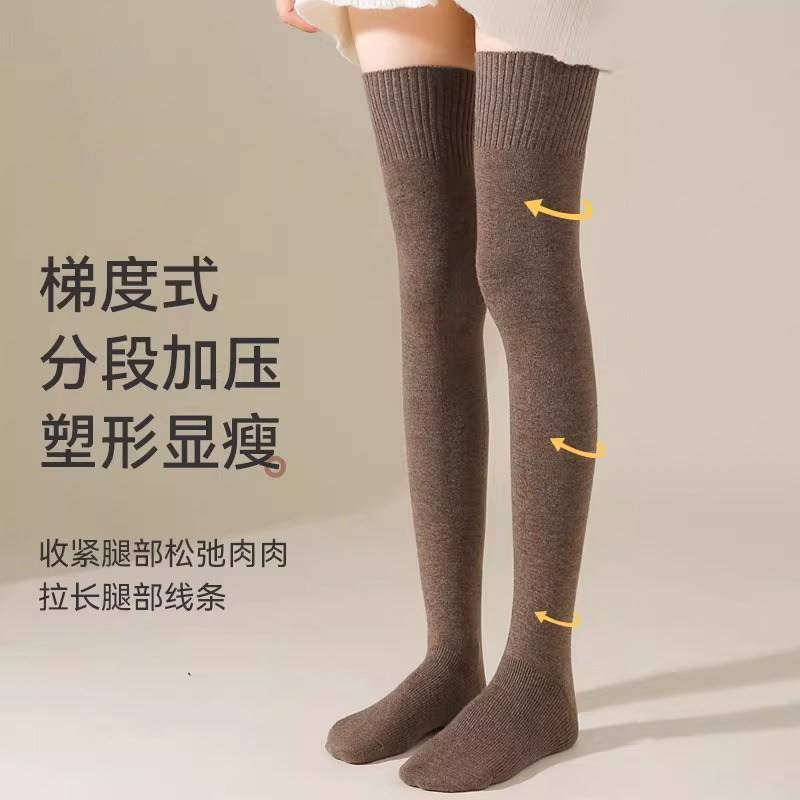 过膝袜子女秋冬羊毛长筒袜加厚保暖护膝大腿袜纯棉压力显瘦高筒袜