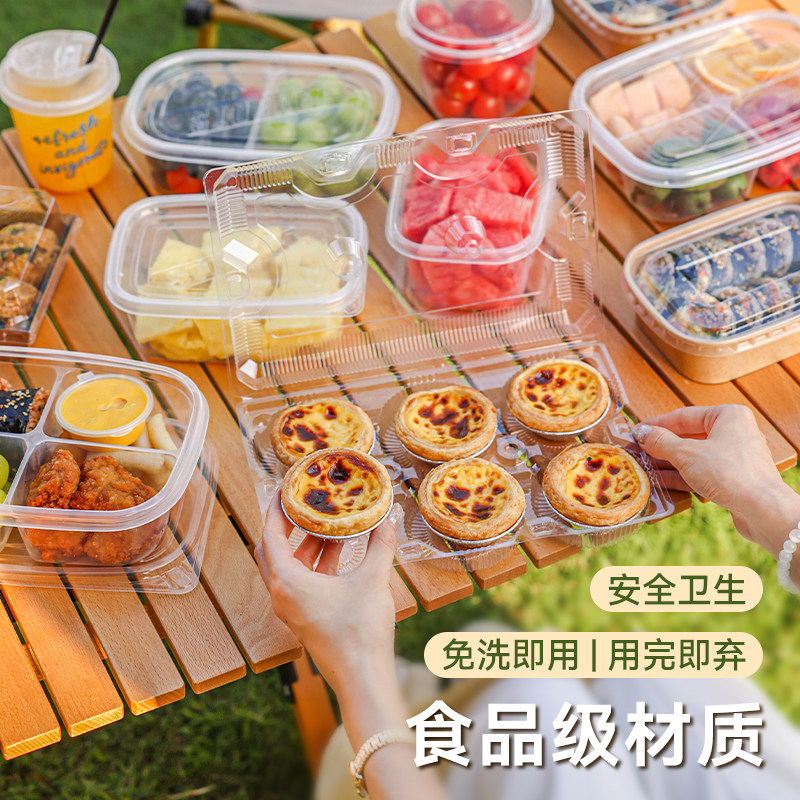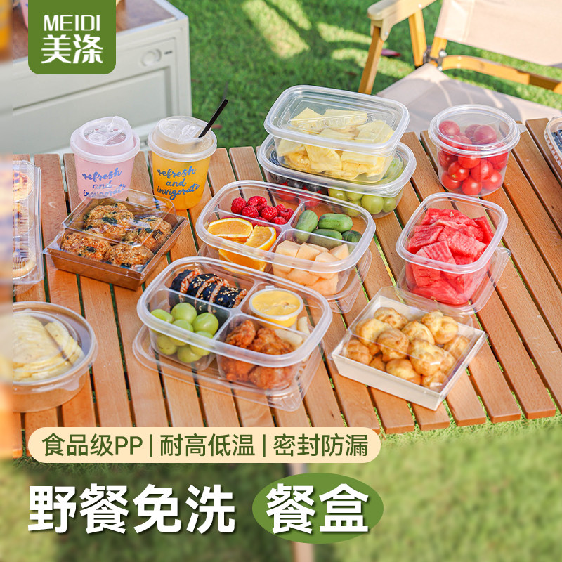 一次性打包盒餐盒食品级饭盒可微波炉加热水果盒子四格沙拉长方形