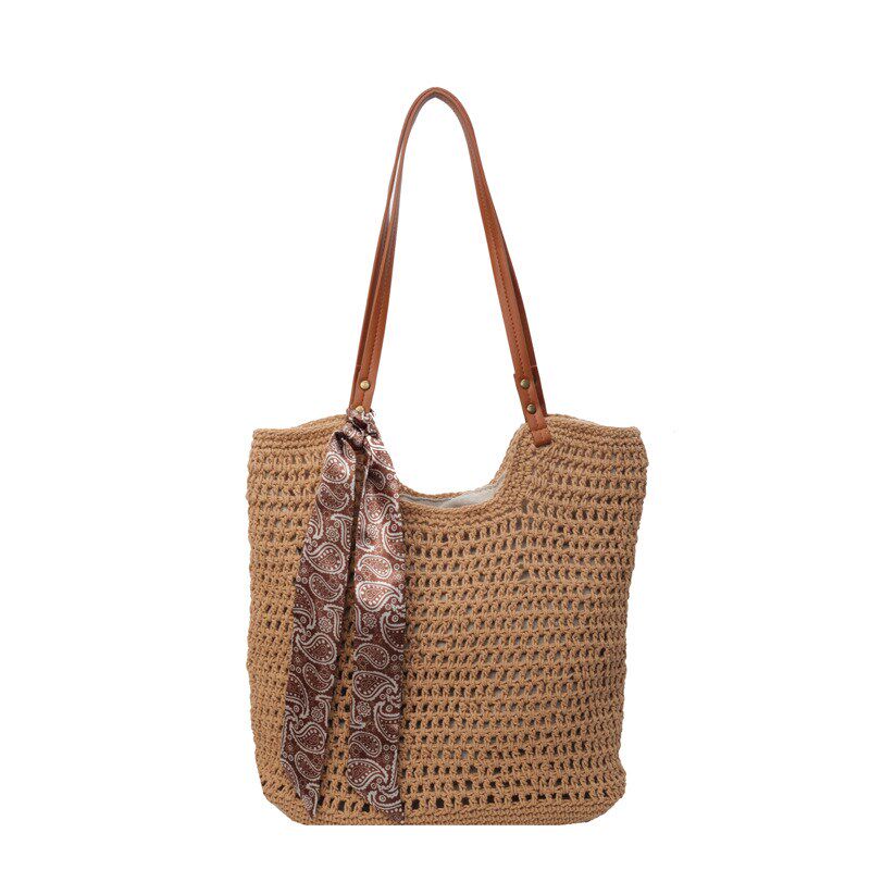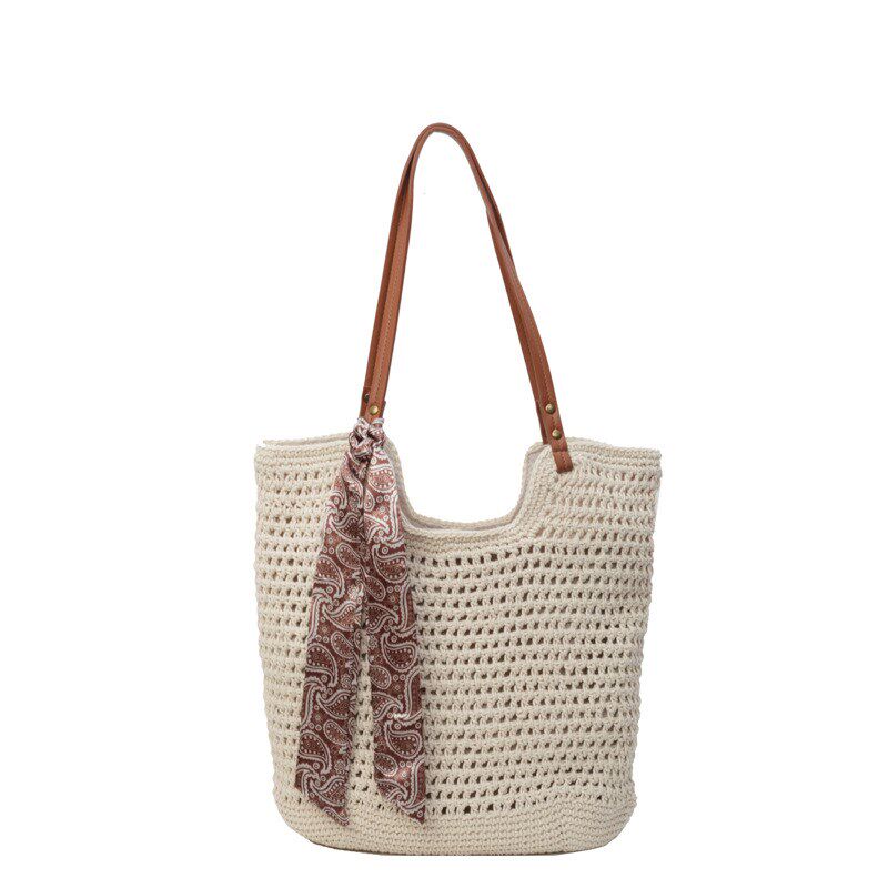 厂家镂空单肩棉线编织包新款夏天大容量草编包海边度假沙滩包