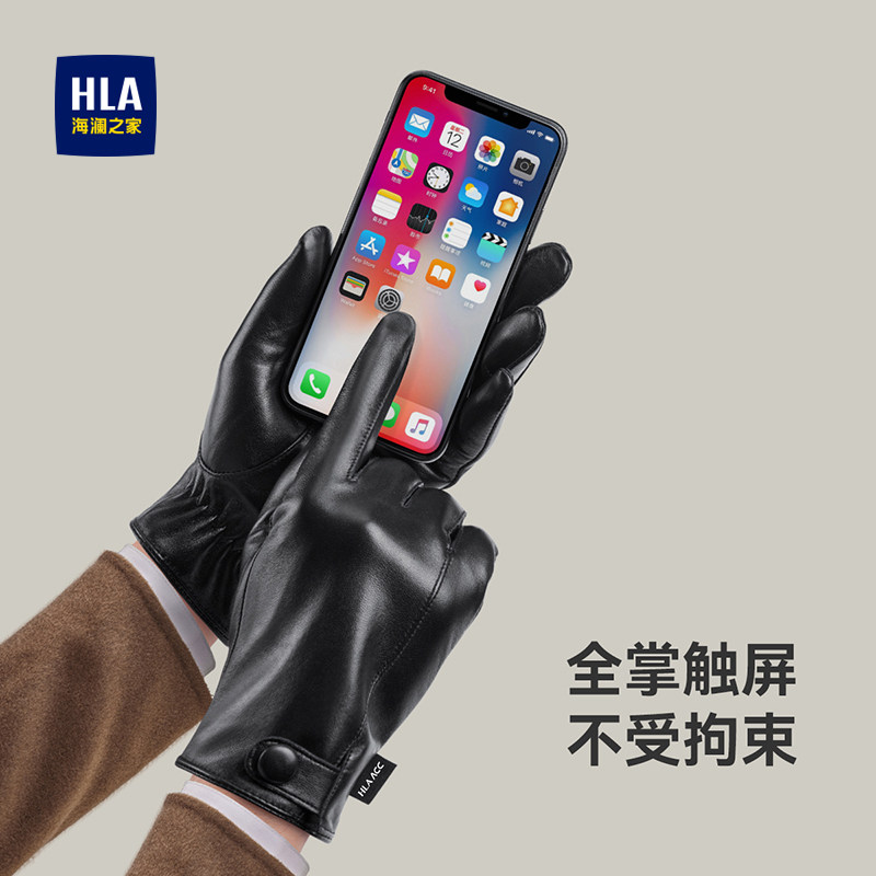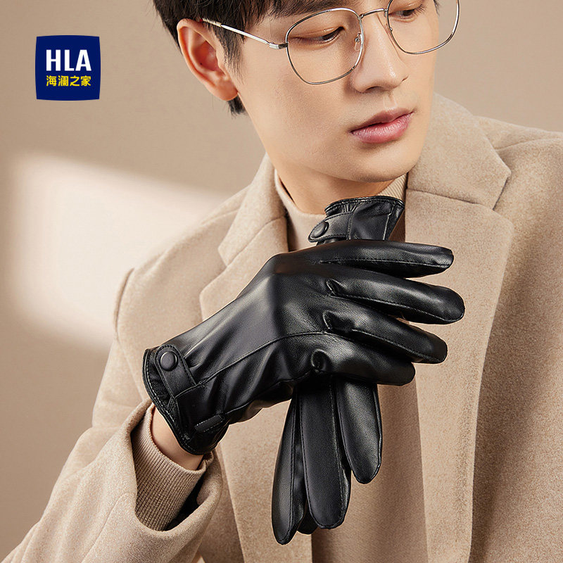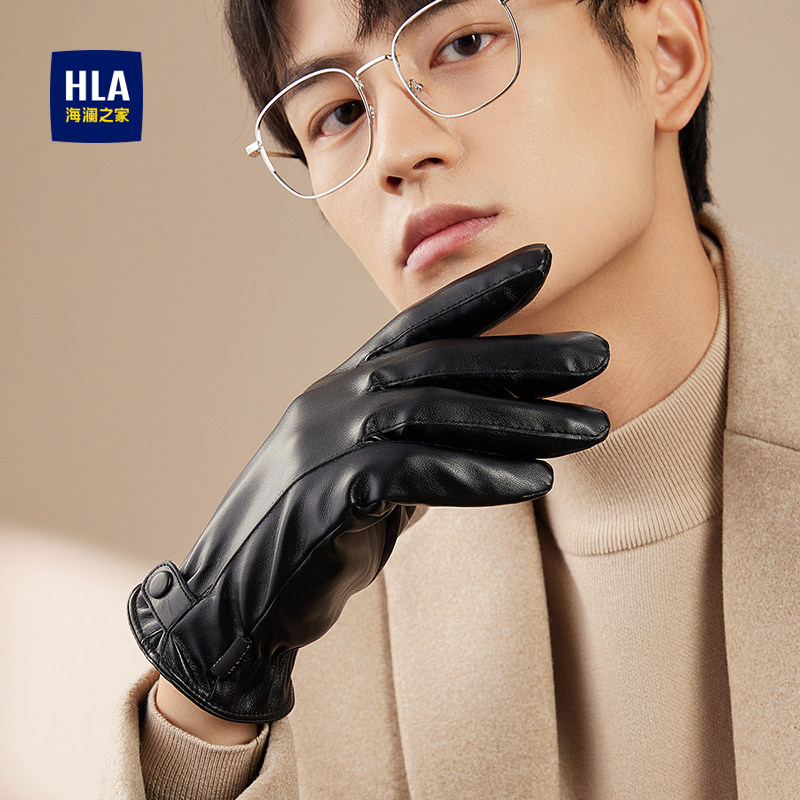 海澜之家皮手套男士秋冬季骑行保暖防风防水触屏摩托机车加绒加厚