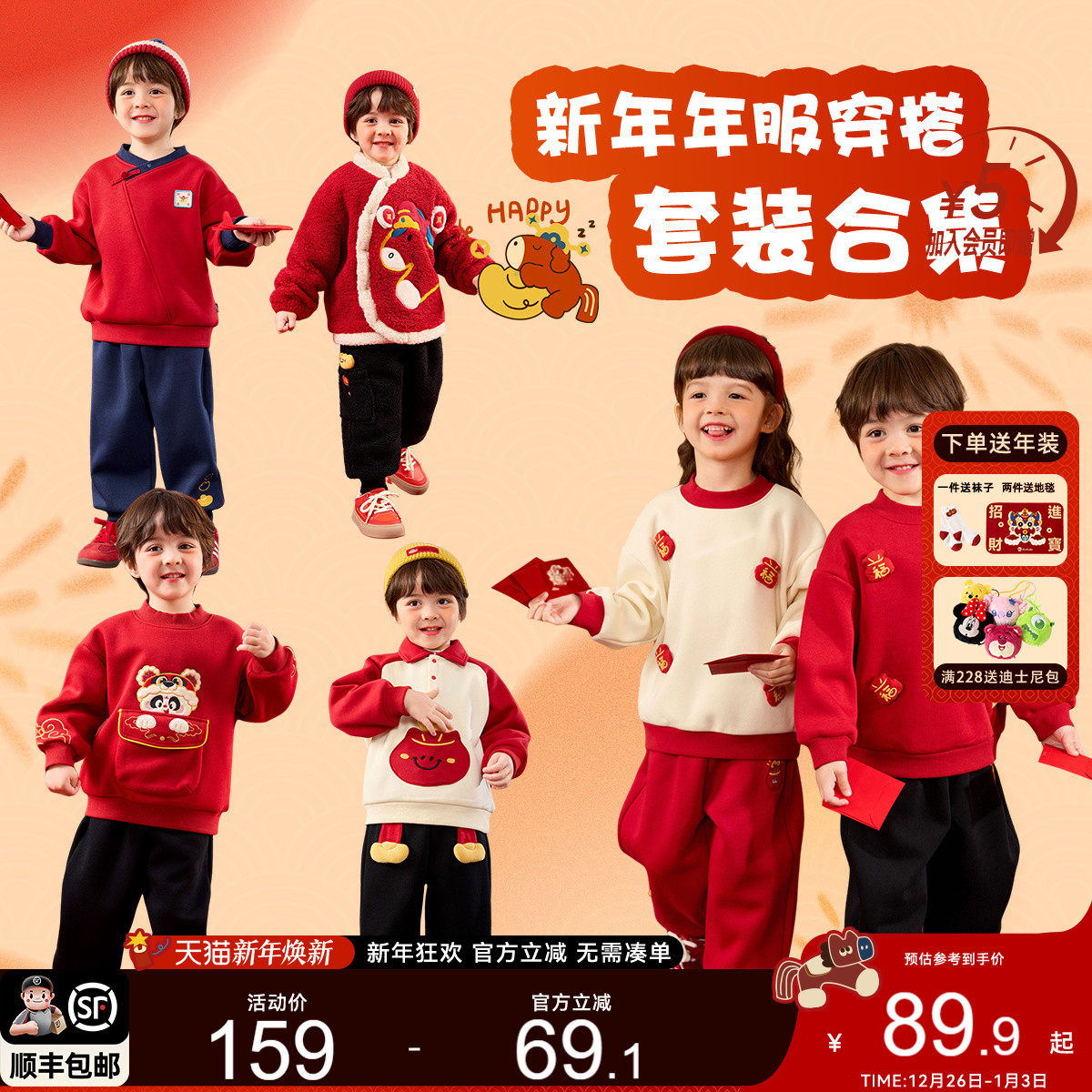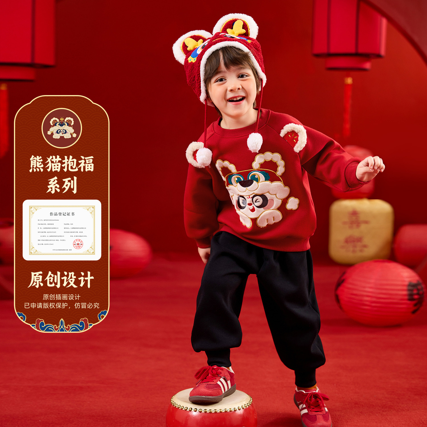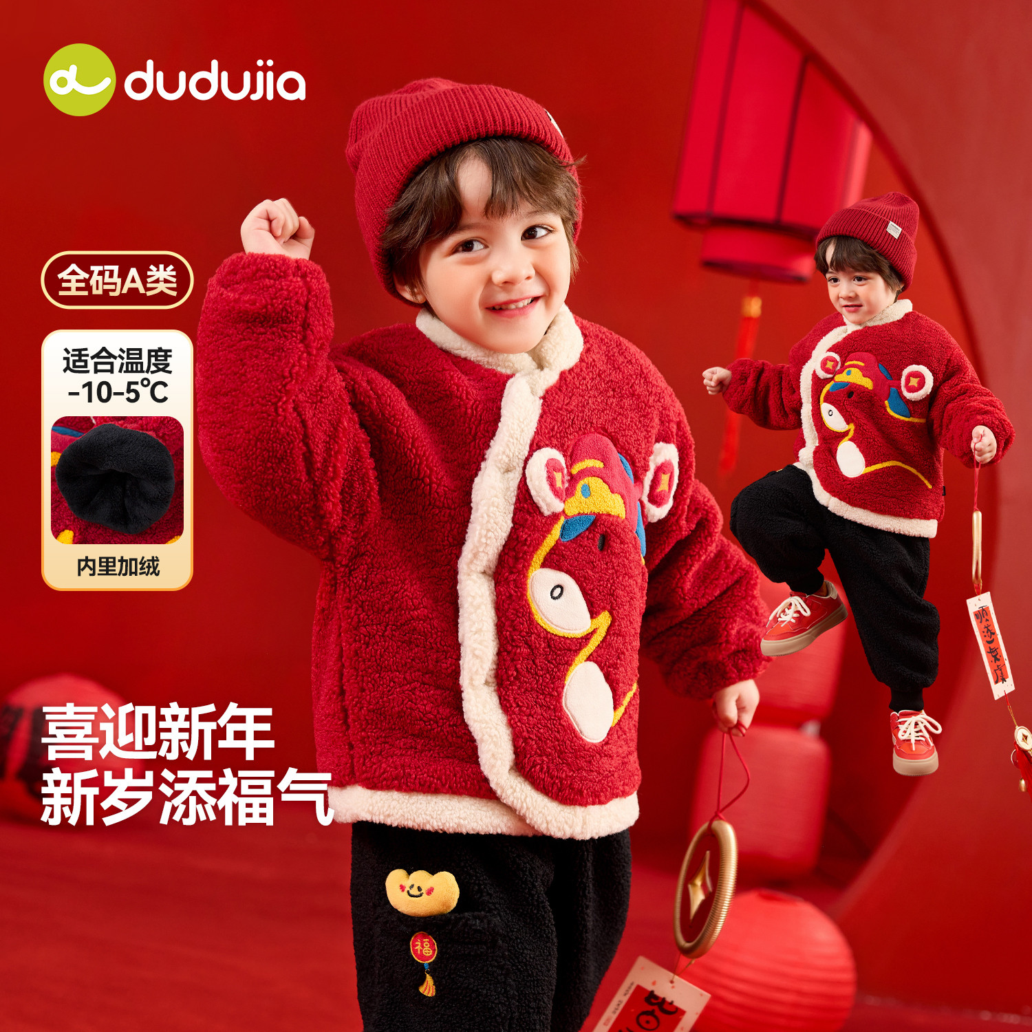 dudujia宝宝套装儿童拜年服唐装男童冬装两件套女童冬季新年衣服a