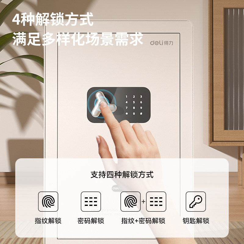 得力保险箱家用小型防盗指纹密码保险柜全钢箱体WiFi手机智能控制保管箱床头柜入墙入衣柜首饰保险箱