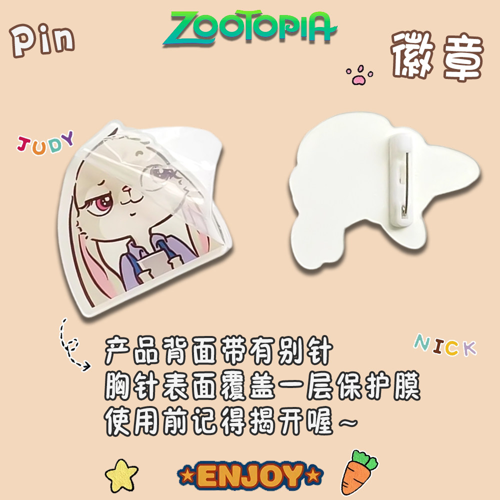 疯狂动物城周边胸针兔子警官朱迪尼克别针衣服徽章包挂件树懒闪电