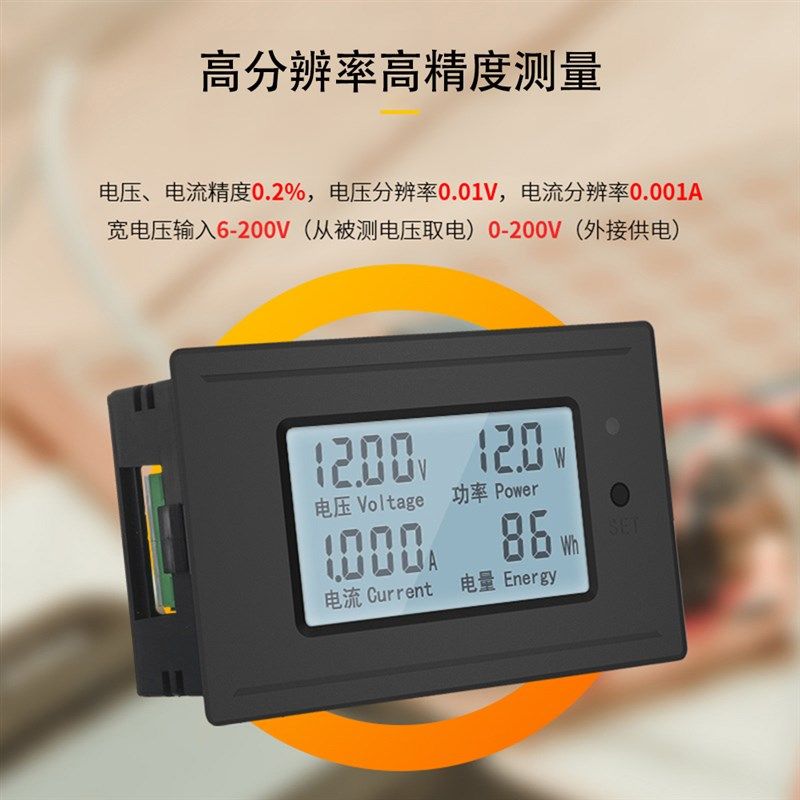 DC6-200V 直流数显r电压电流表 功率电量电力监测仪万用表带蜂鸣
