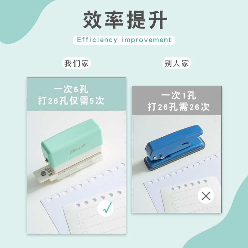 可得优六孔打孔器活页本多孔打孔机a4手账考研纸张装订机打洞器