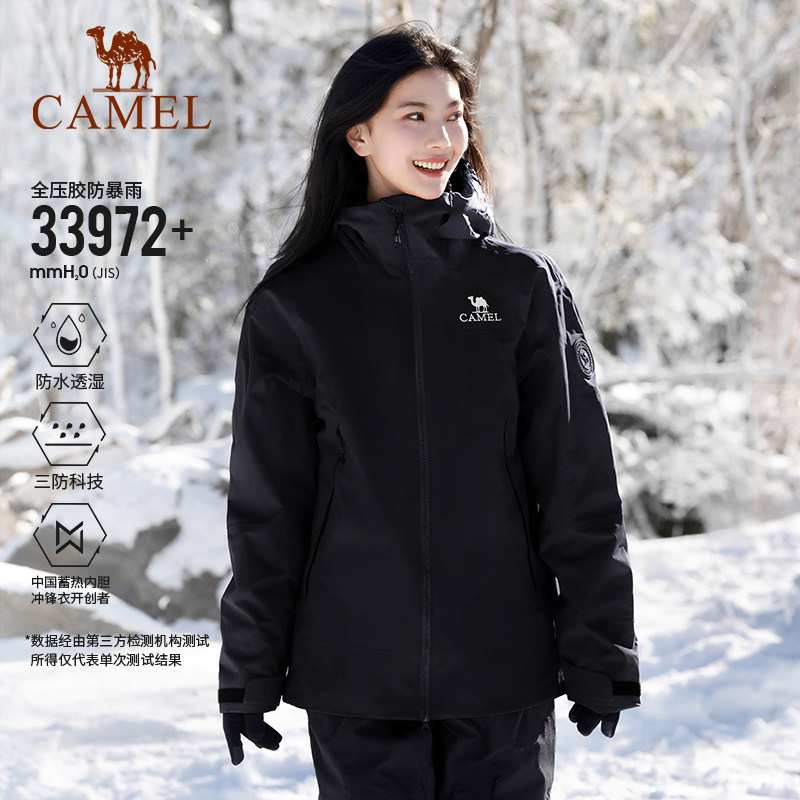 骆驼3514冲锋衣女三合一羽绒服黑色加厚外套男冬季户外防水登山服