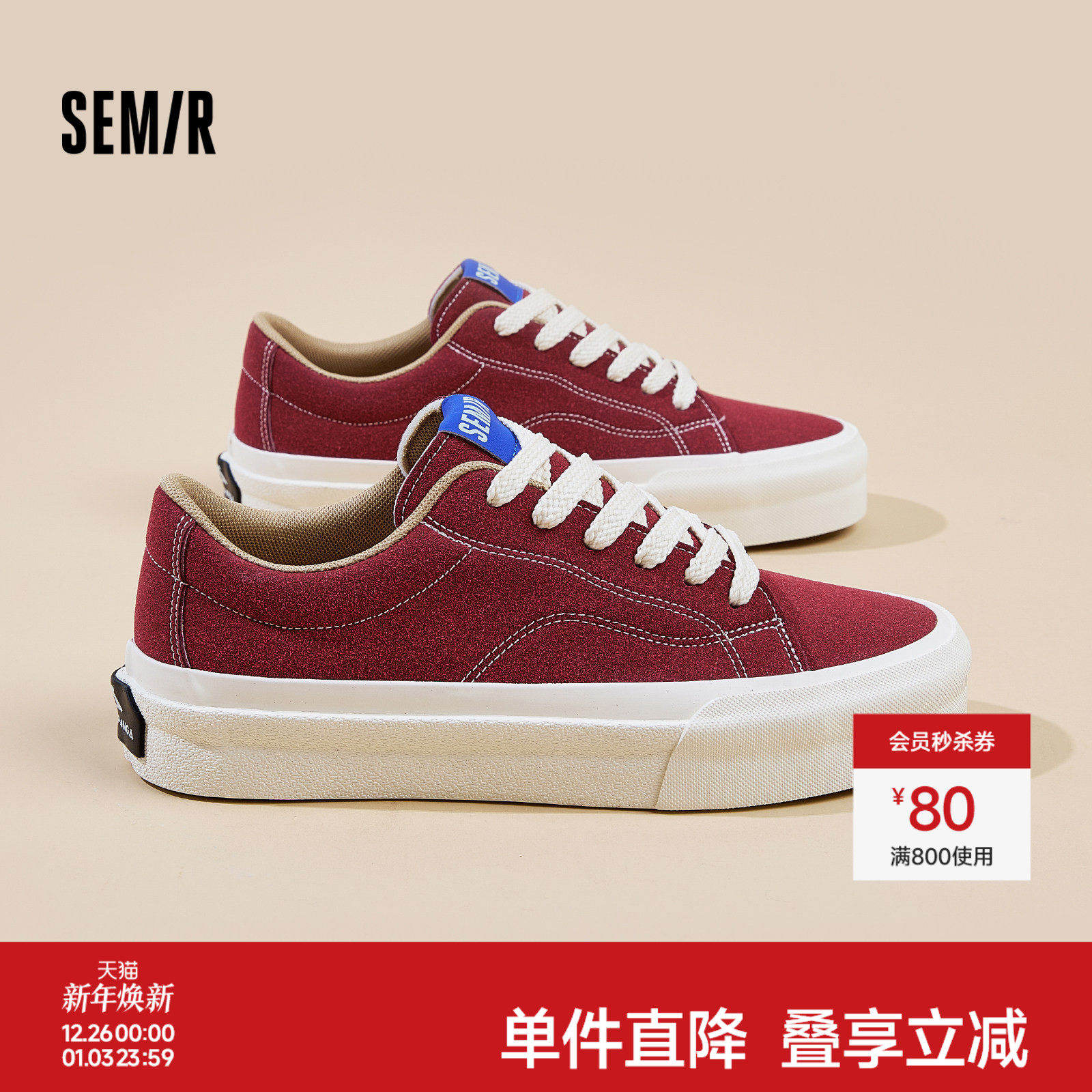 Semir男鞋板鞋2025秋冬新款小众设计红色休闲运动滑板鞋百搭潮鞋