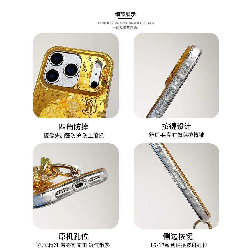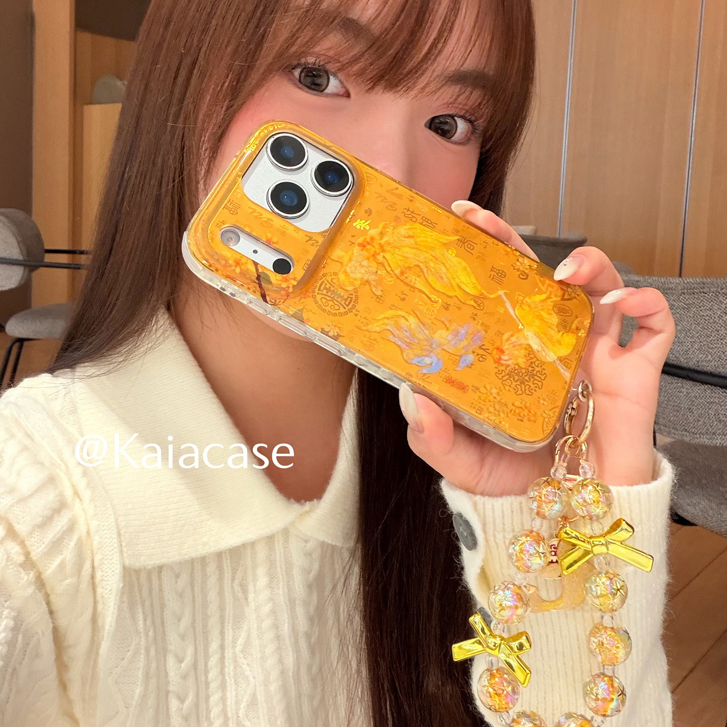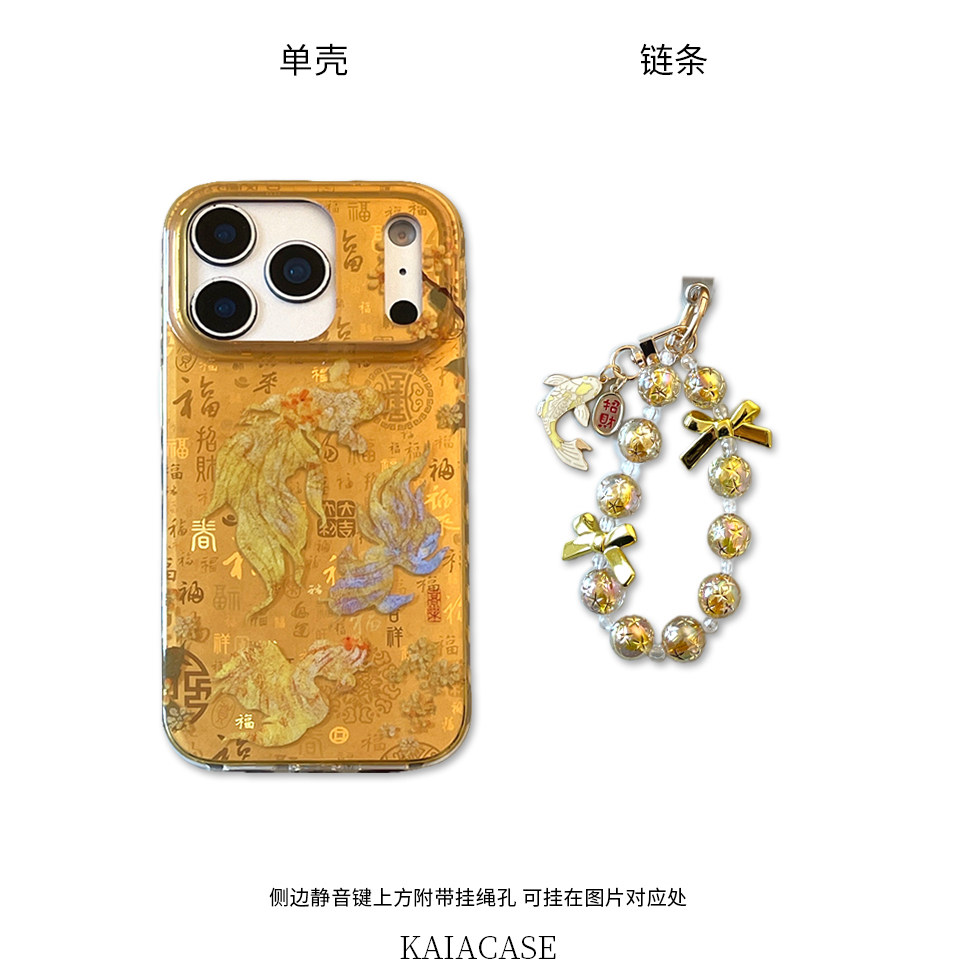 kaia 新中式喜庆金色鲤鱼百福图适用苹果17promax手机壳iphone16pro新款15女14pro带链条15pro全包防摔手机套