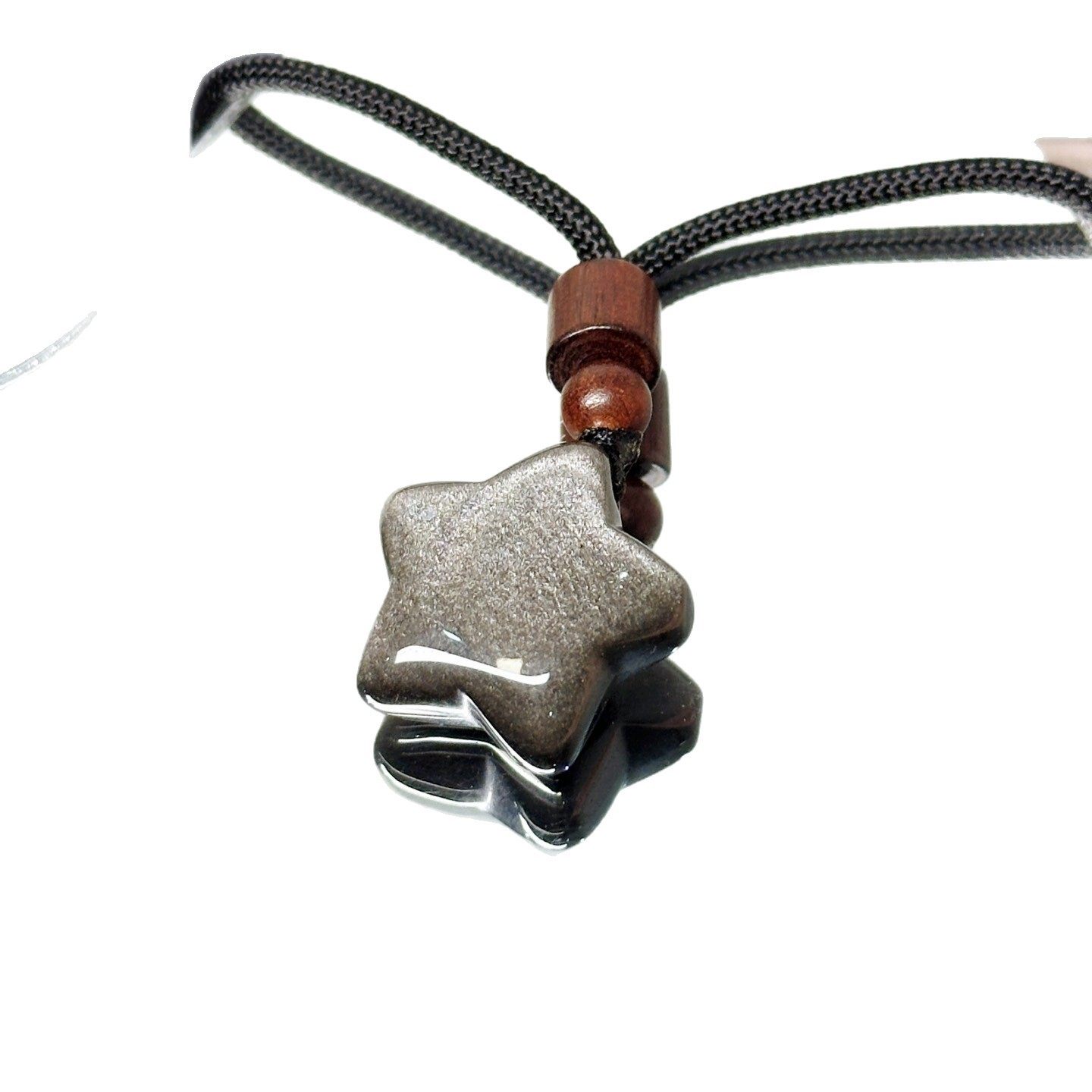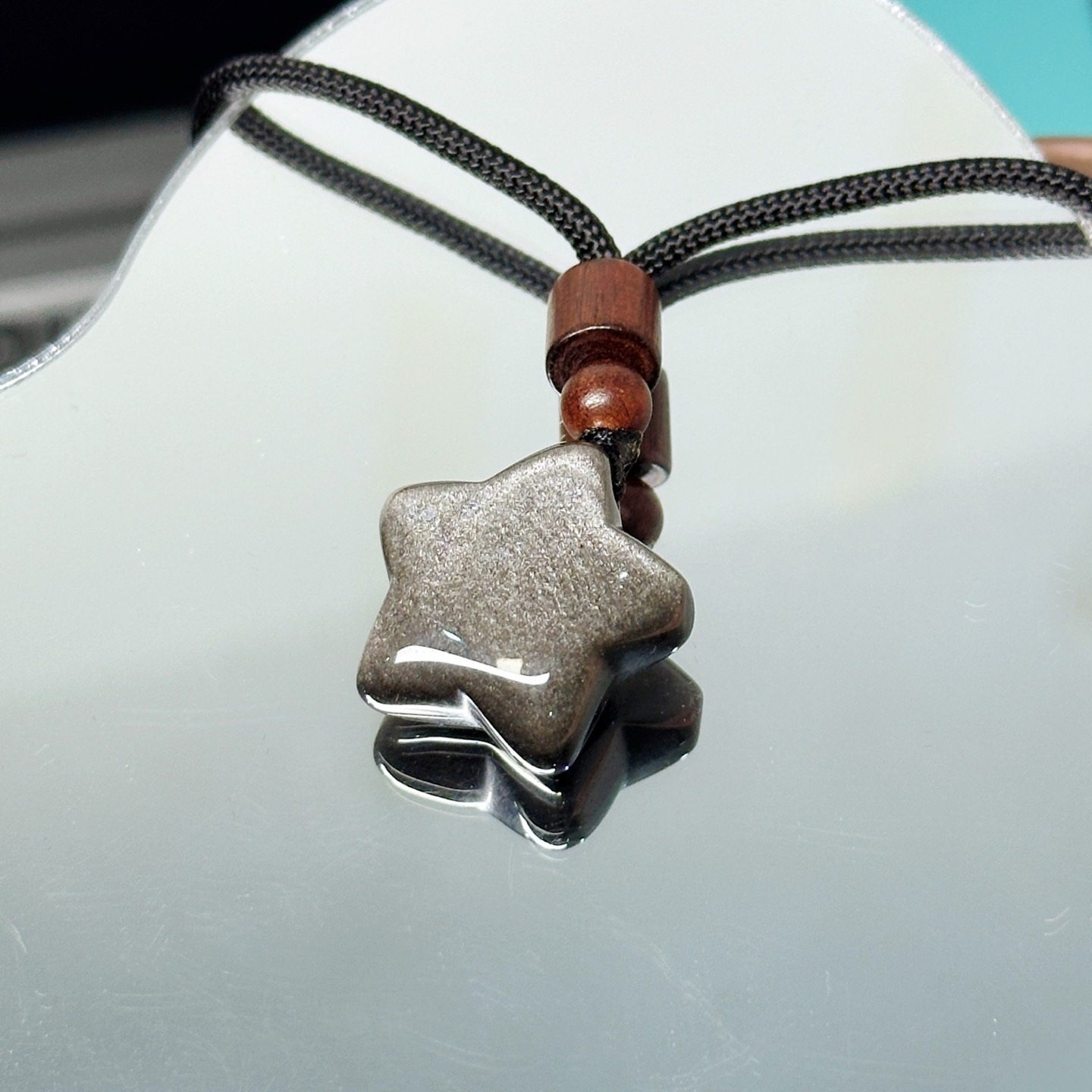 天然黑曜石银曜石星星情侣项链复古可调节水晶挂坠新中式闺蜜