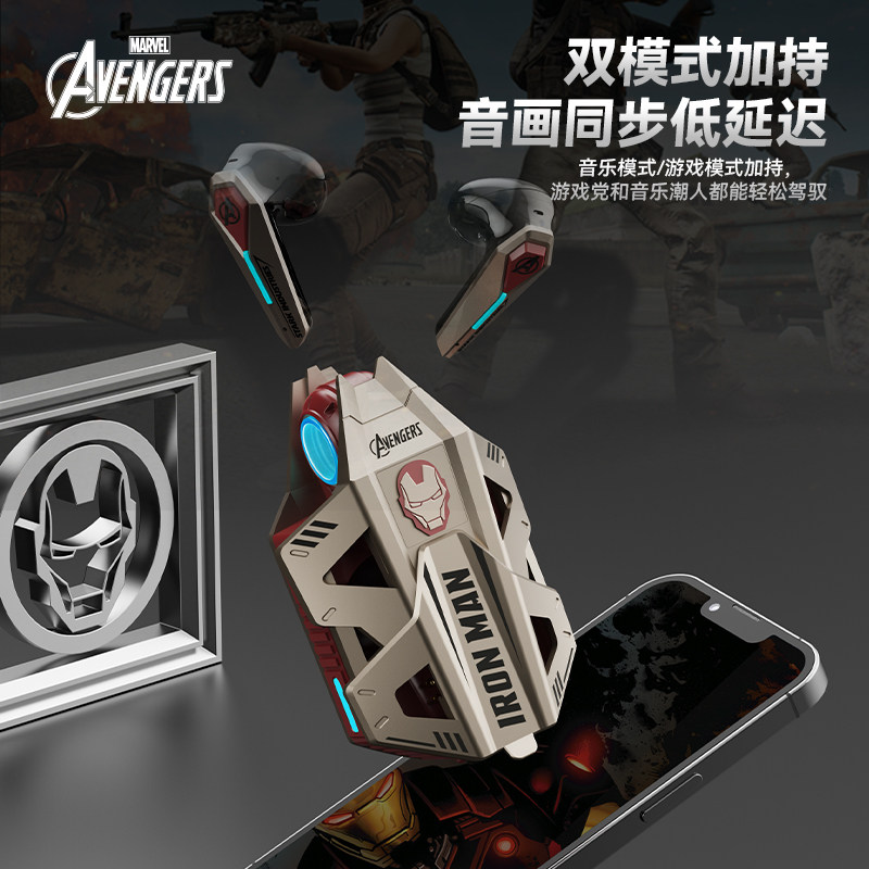 漫威PM01钢铁侠机甲战舰蓝牙耳机无线半入耳游戏降噪送男生日礼物