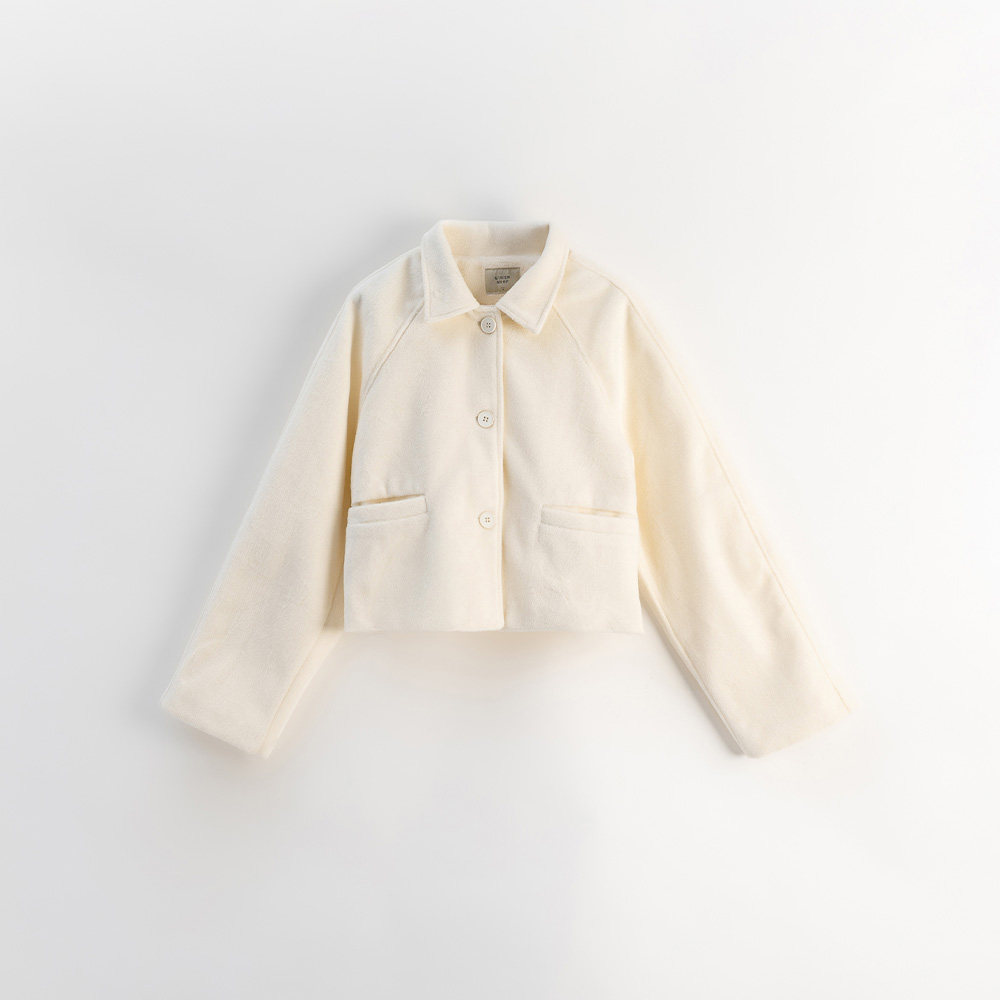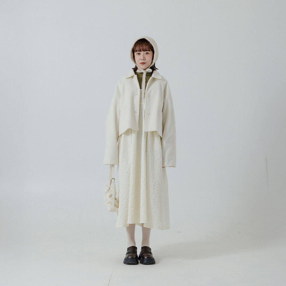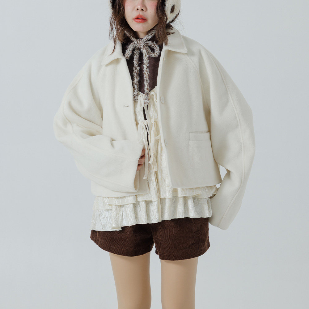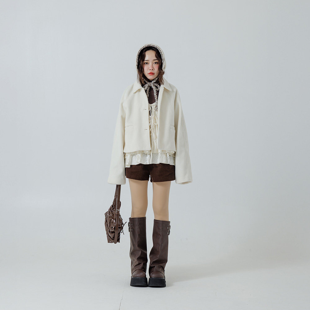 QUEENSHOP 2025秋冬新品女装质感毛呢排釦短版外套米白02071671