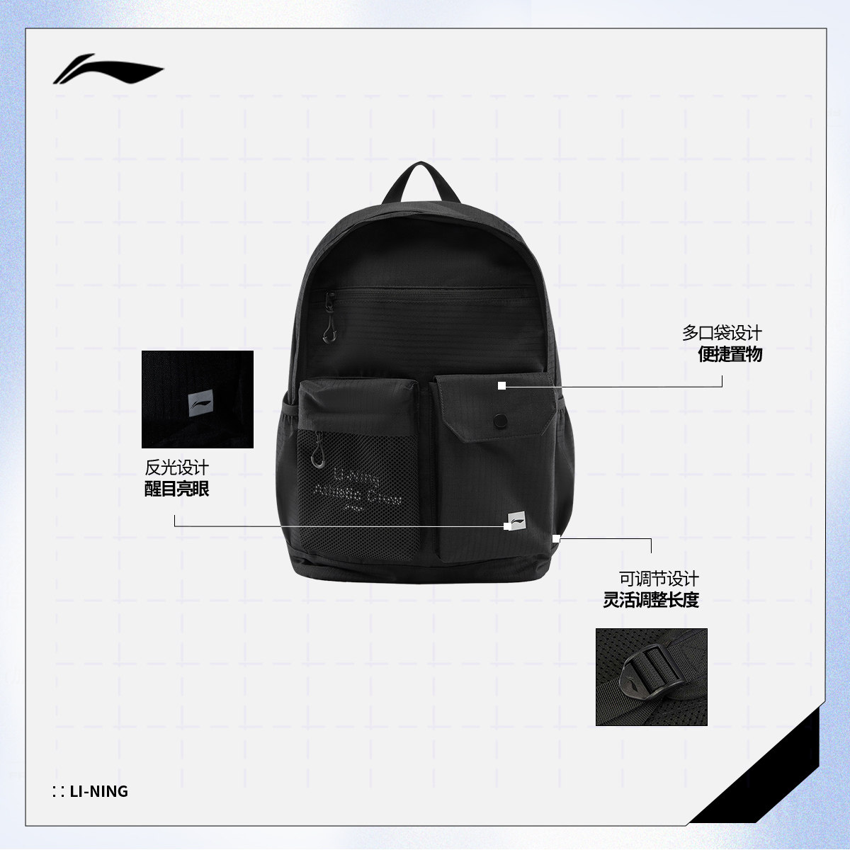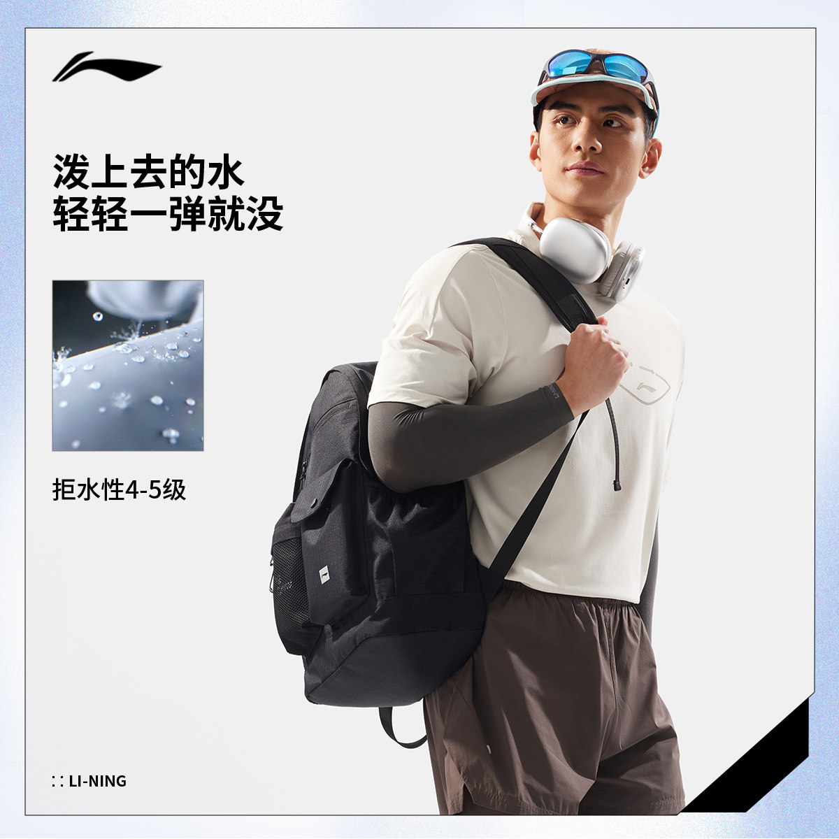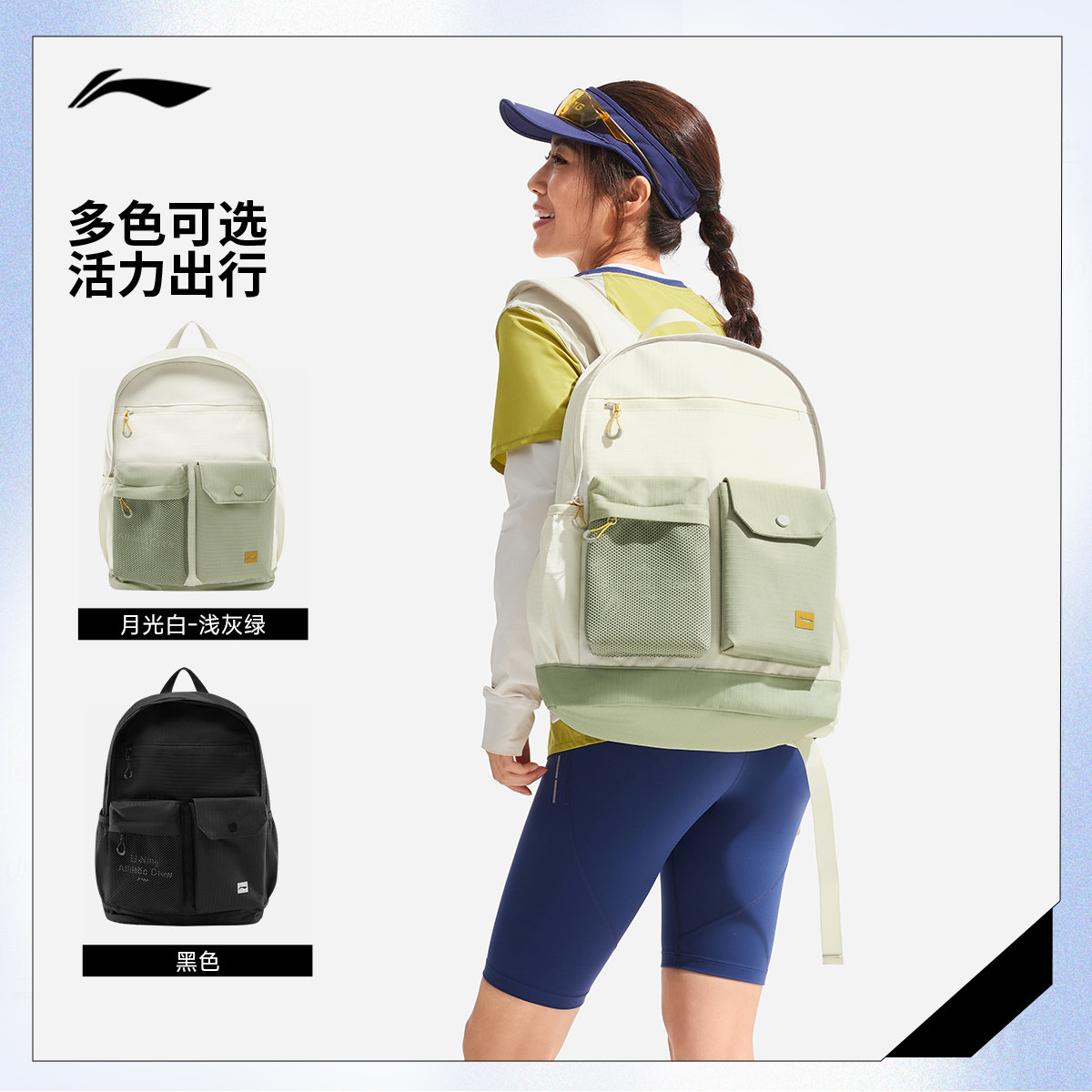 李宁双肩包男女同款包包官方户外出游健身背包学生书包反光运动包