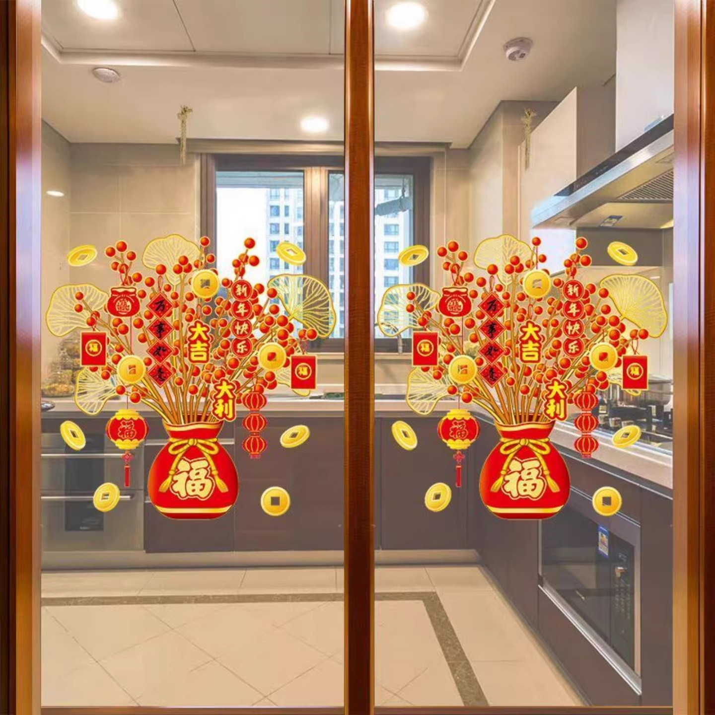 马年2026新年春节装饰静电贴窗贴玻璃门贴纸窗花贴画元旦过年布置