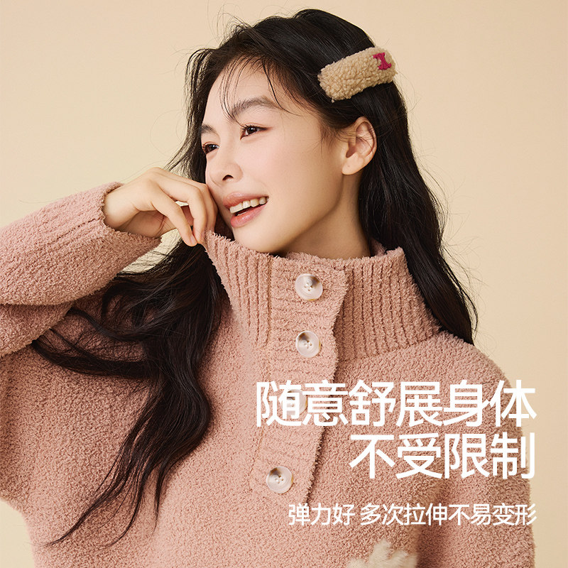 蕉内绒绒520Home女士保暖超级市场半边绒长袖睡裙冬季加绒家居服