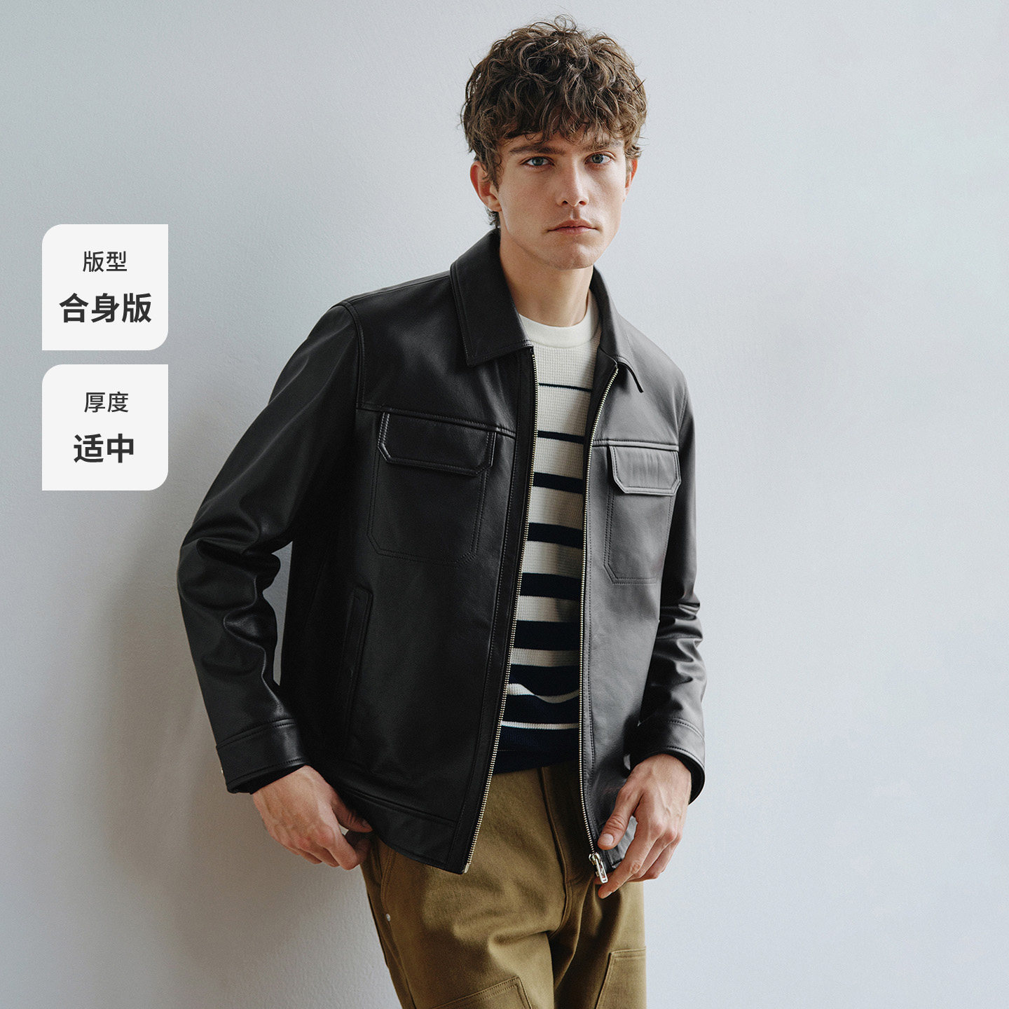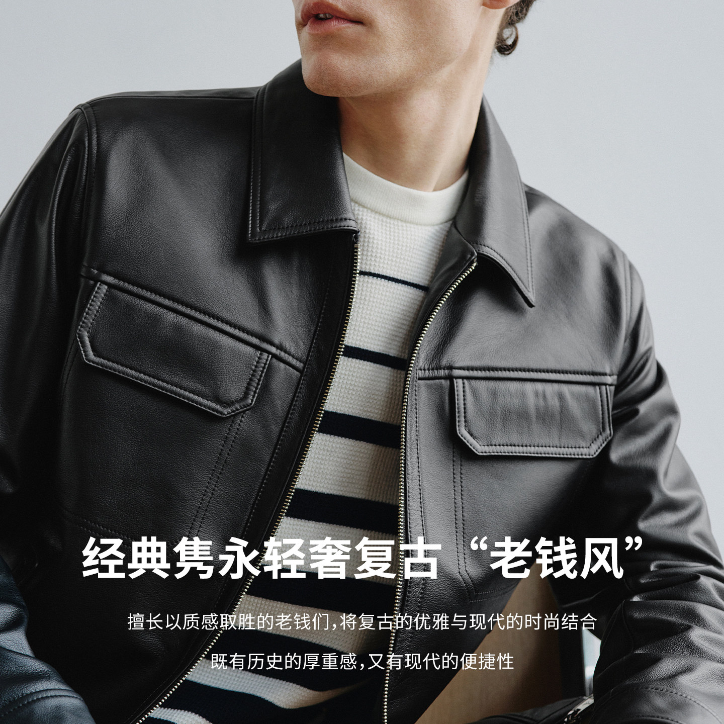 【绵羊皮】九牧王男士皮衣外套秋冬真皮立领翻领皮夹克
