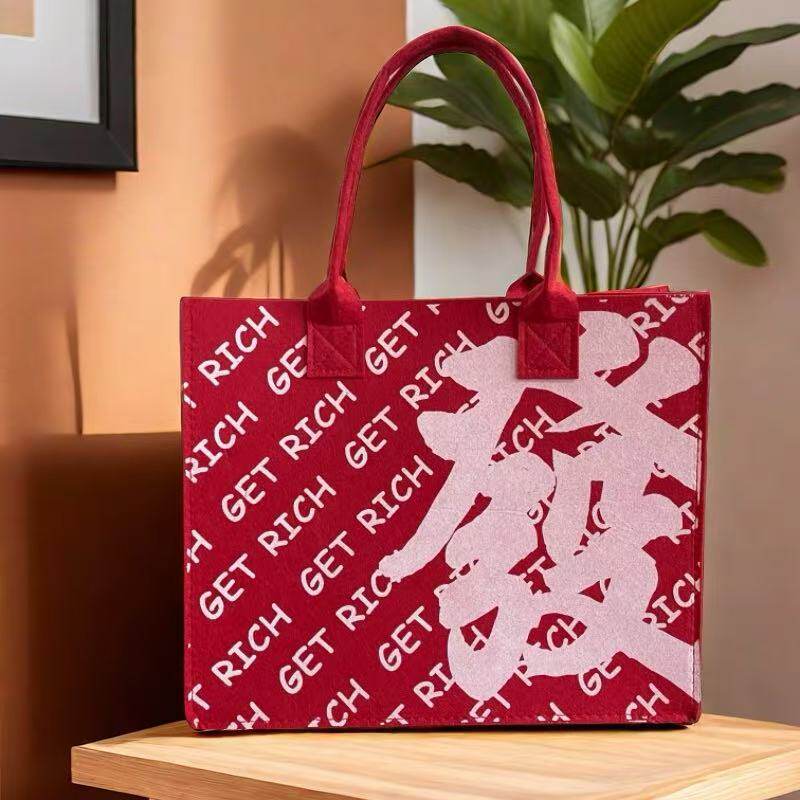 新款卡通毛毡包大容量手提购物袋加厚妈咪包网红百日宴礼品伴手礼