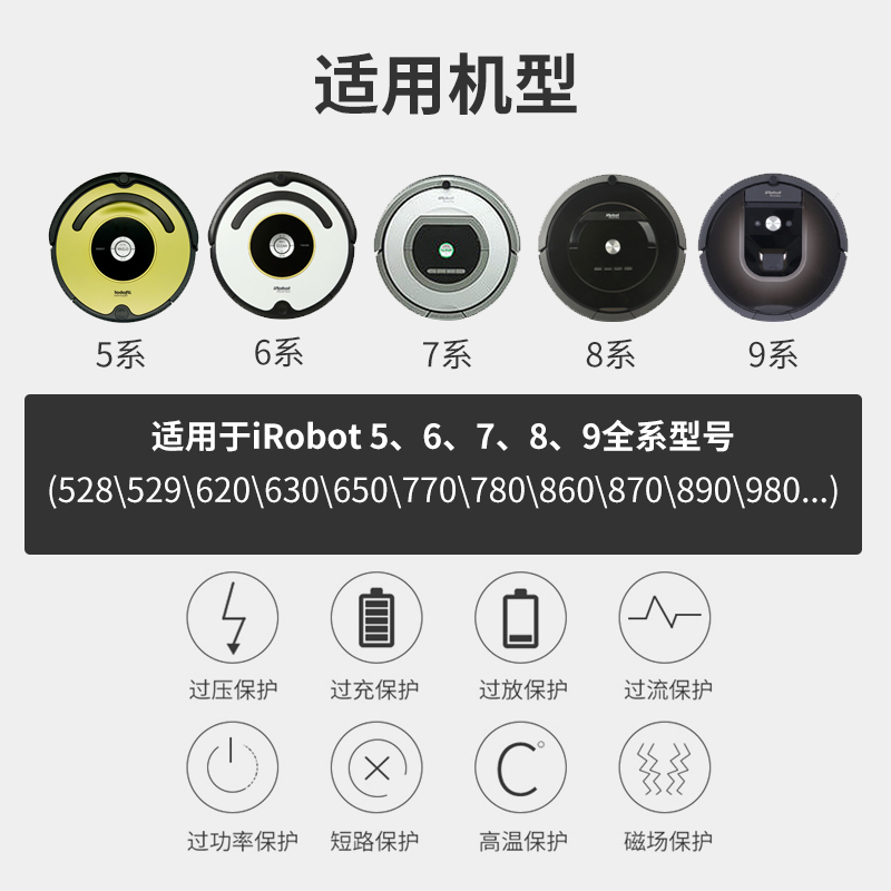 适用于iRobot roomba拖地机电池跟换配件充电锂电池 529/620/650/770/780/860/870/880扫地机电池
