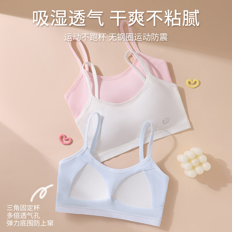少女内衣发育期学生初中生女孩青春期纯棉文胸吊带固定杯运动防震