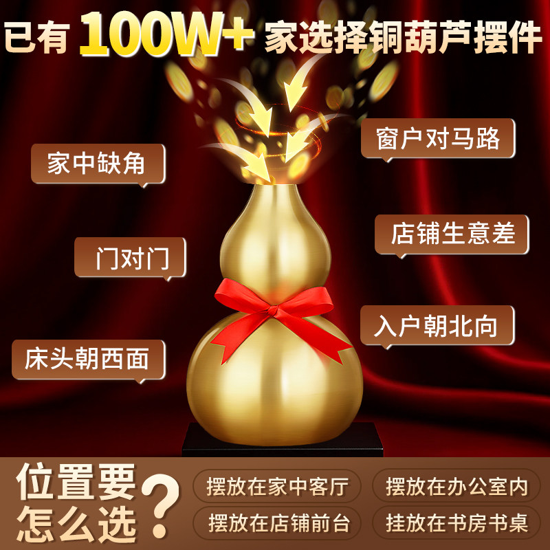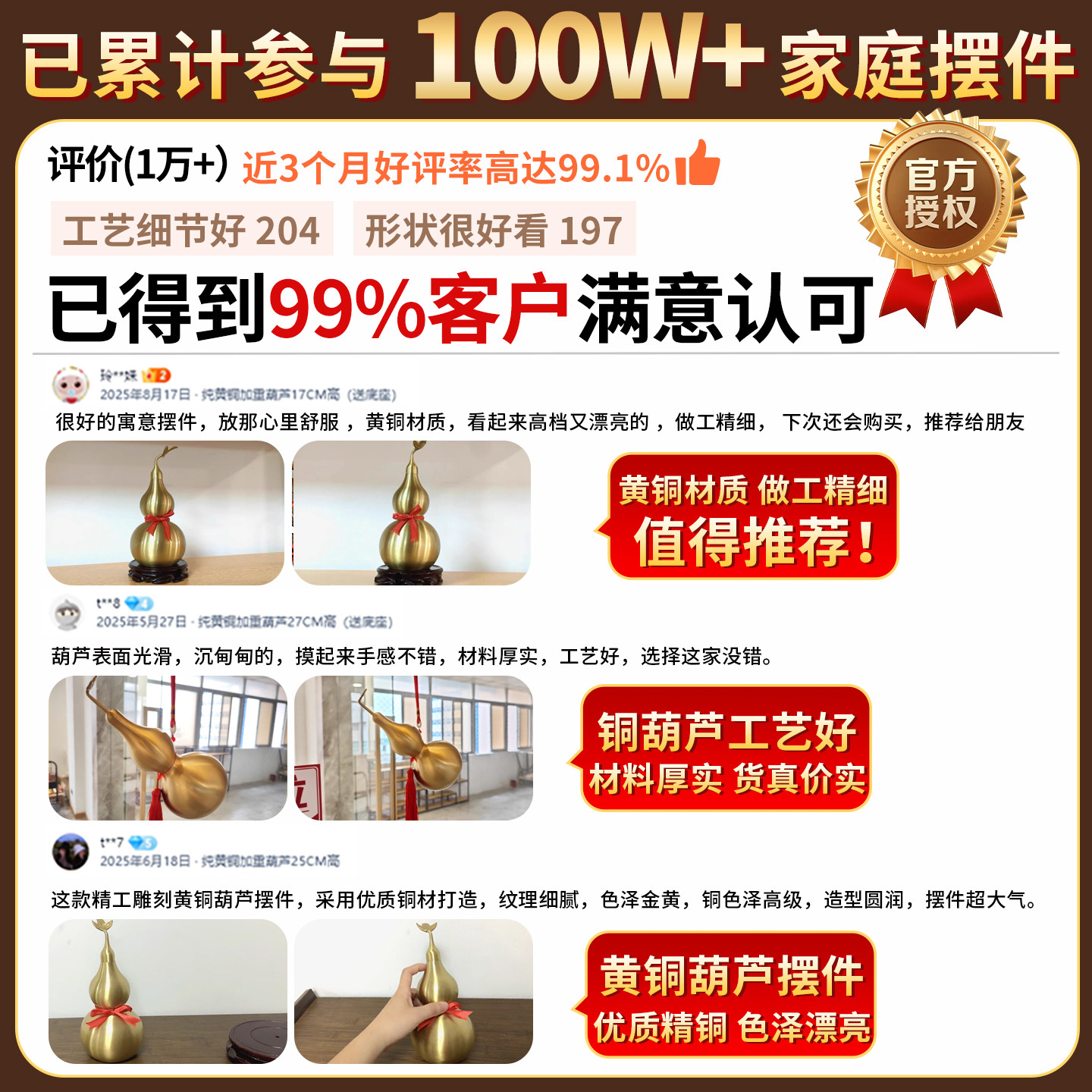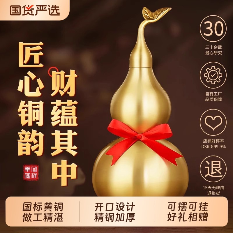 铜葫芦摆件纯黄铜开口开盖空心葫芦挂件乔迁新居入宅搬家客厅装饰