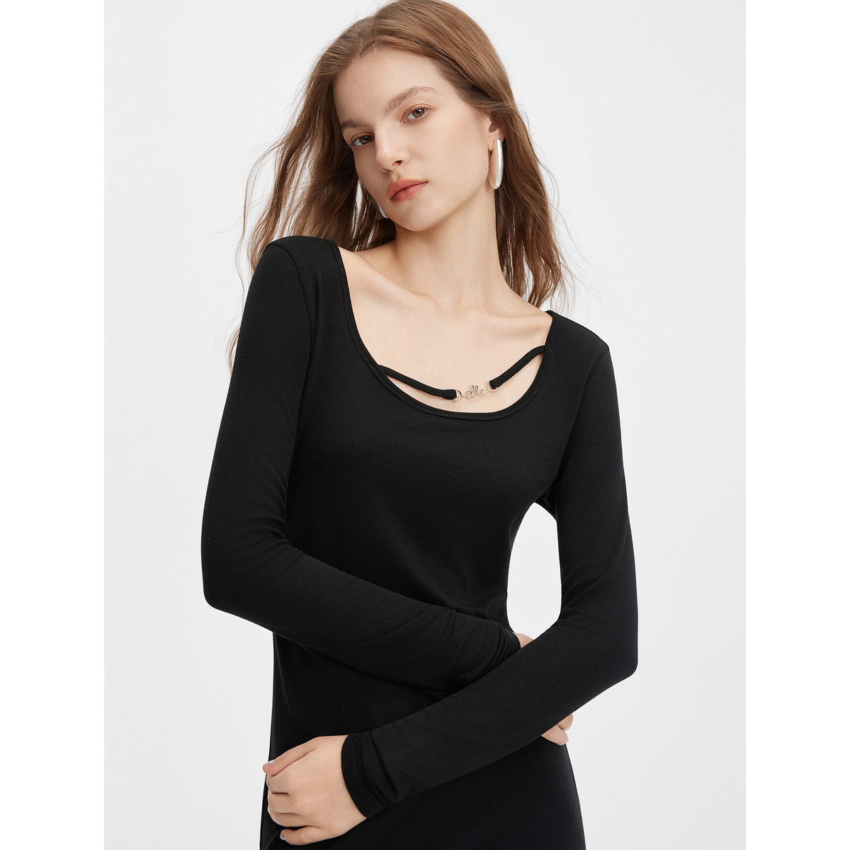 iqcq气球熊时尚辣妹套装秋季抹胸连衣裙女收腰一字肩黑色蓬蓬裙子