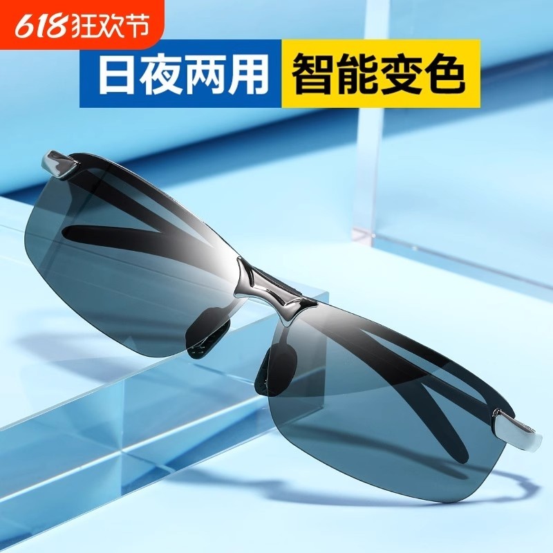 护目镜日夜两用变色智能高清墨镜男士偏光驾驶太阳眼镜夜感光变光