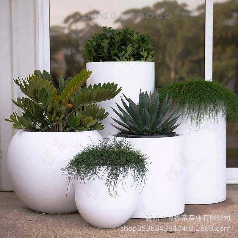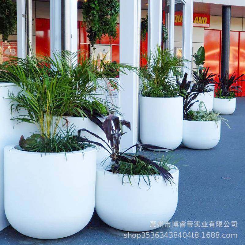 户外玻璃钢花盆商场花钵公园圆形大花缸广场花箱组合酒店花器美陈