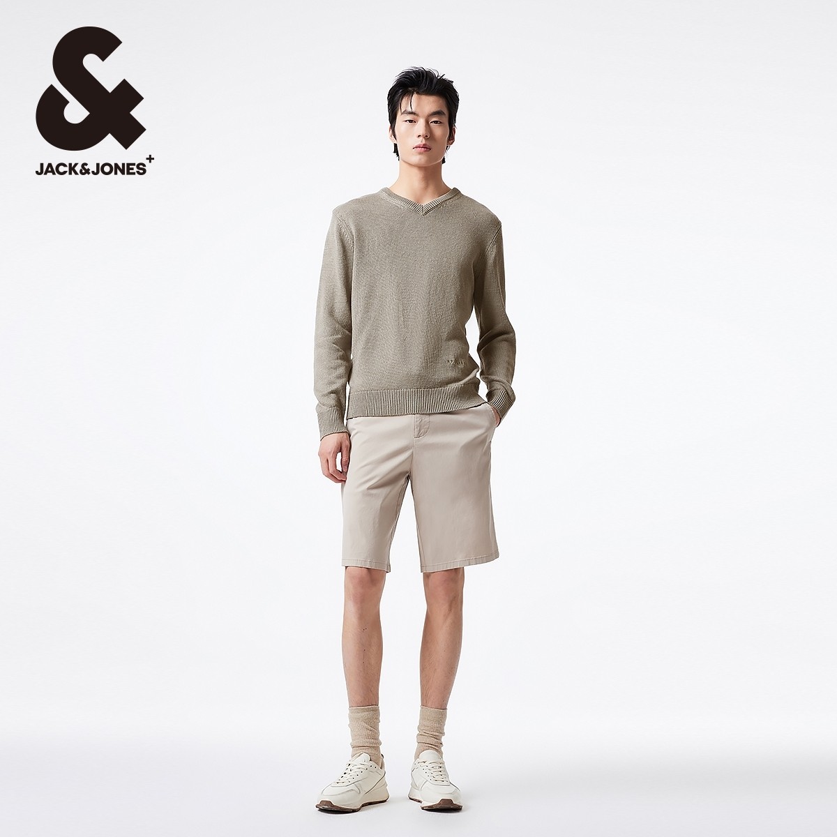 杰克琼斯夏季新款针织衫男装修身长袖V领字母潮薄款纯色舒适毛衣