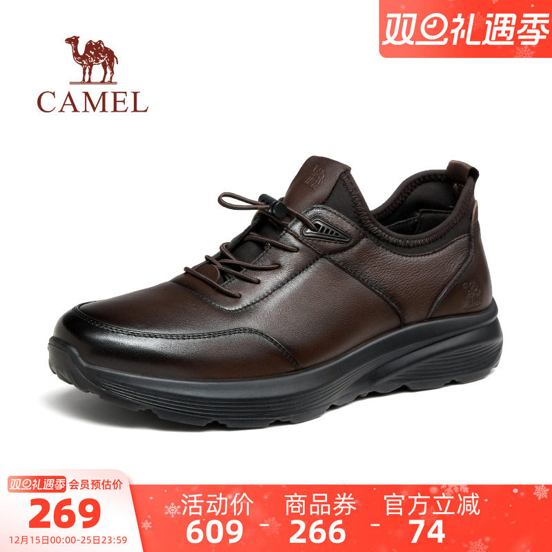 骆驼男鞋运动鞋2025秋冬新款加绒真皮男士耐磨商务健步鞋休闲皮鞋
