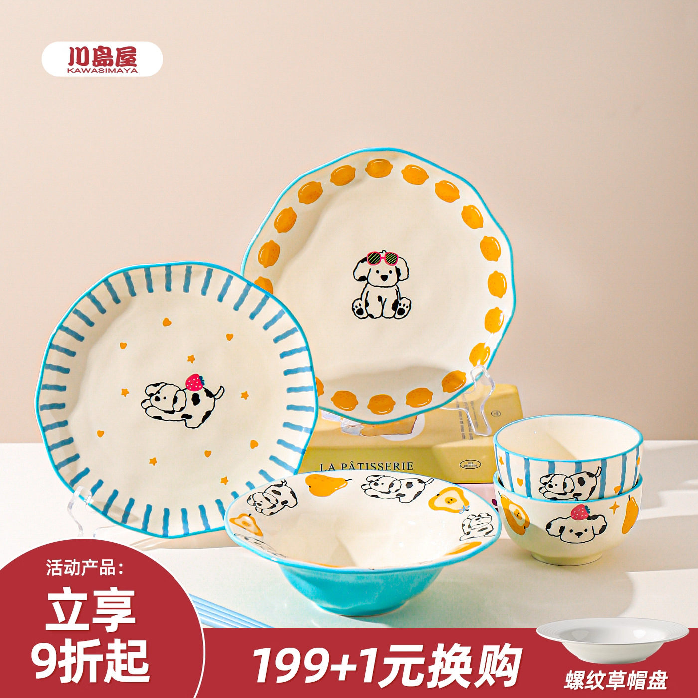 川岛屋可爱陶瓷饭碗家用2025新款高颜值汤碗碟盘子一人食餐具套装