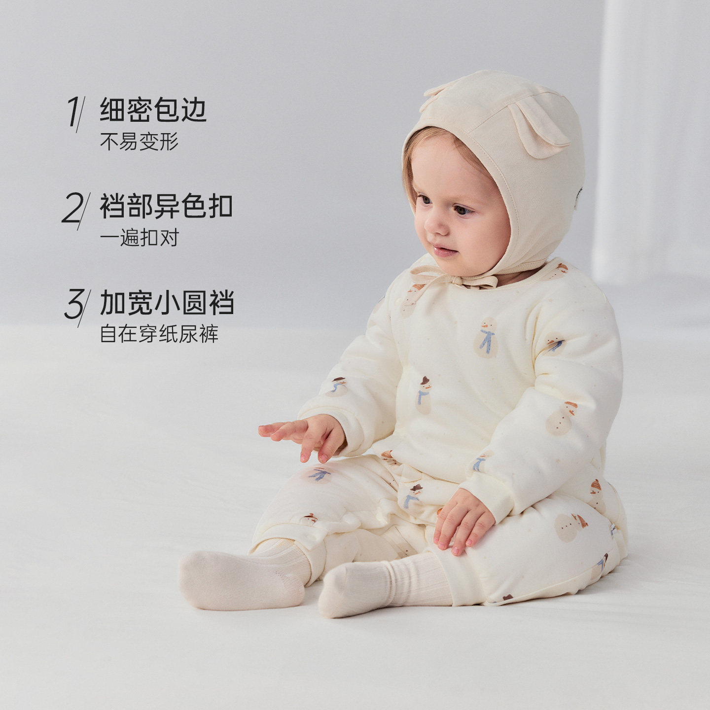 babylove婴儿连体衣秋冬款夹棉哈衣保暖棉服宝宝居家爬服雪宝墩墩