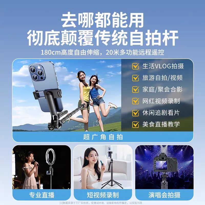 【厚唇鱼】重磅新品丢丢杆5.0多功能四脚架自带麦克风/投屏器/蓝牙遥控器1.8m便携支架自拍/直播/演唱会必备